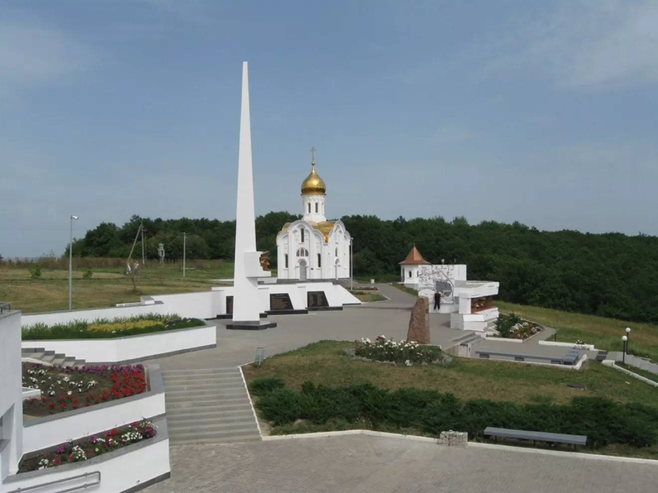 Выставка боевой техники на улице, часовня «Иоанну-воину» и стелла высотой 17,5 метров, в честь маршала Советского Союза Ивана Конева.