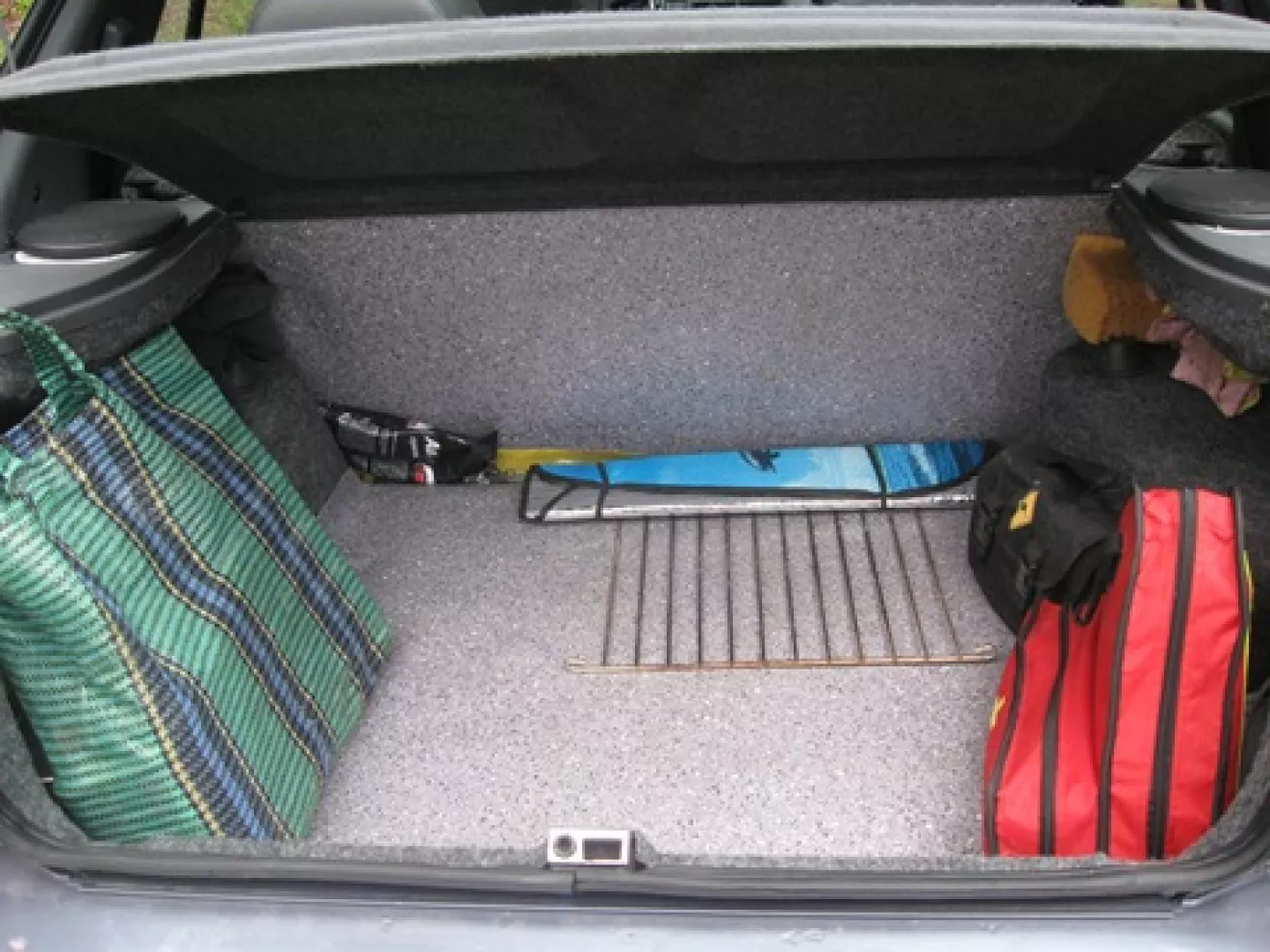 Первое что было сделано, застилил багажник линолиумом. Думалось сначало о резиновом коврике, но эта идея отпала, т.к. при разложенных сидениях, его надо будет куда нить тулить, а линолиум кроме пола прикручен и к сидухе, в итоге получается ровный пол по которому можно ерзать всякими гадостями и не травмировать лакокрасочное покрытие сидухи + не надо париться с подстилочками и клиеночками дабы не выпачкать багажное отделение :)