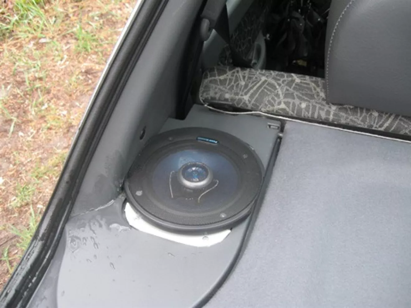На фотке сразу видна болезнь всех славут! Водичка которая течет прямо в динамик :) Радует что с моей конструкцией эта водичка на динамик не попадает и стекает через щелочки за обшивку :) Если там встоит все штатное, то родной динамик берет это все на себя и сразу же рвется :)