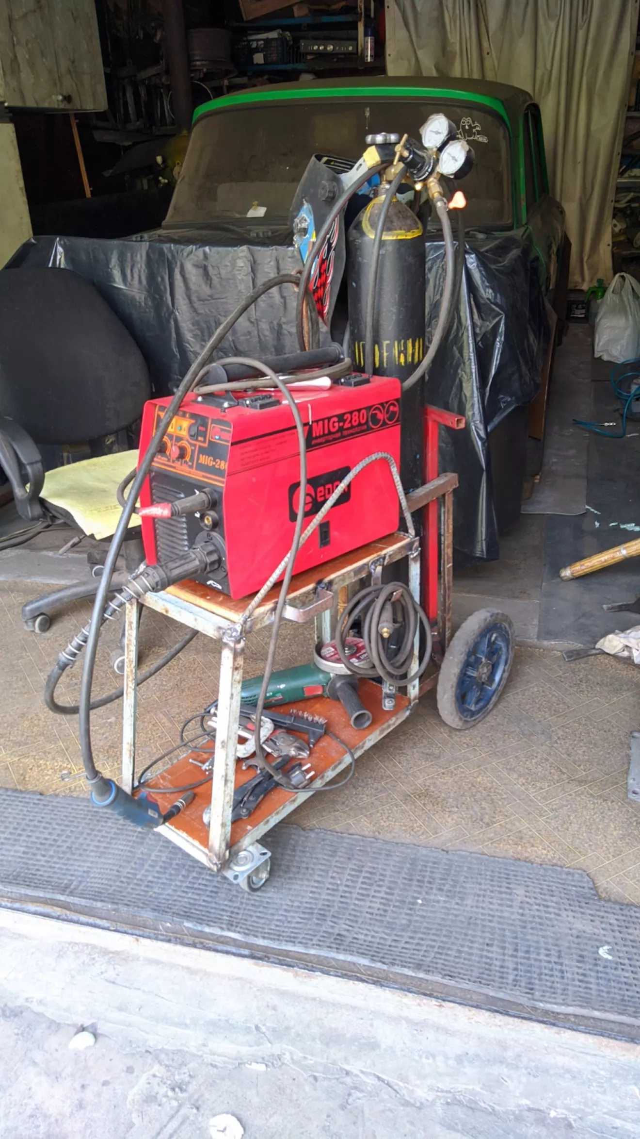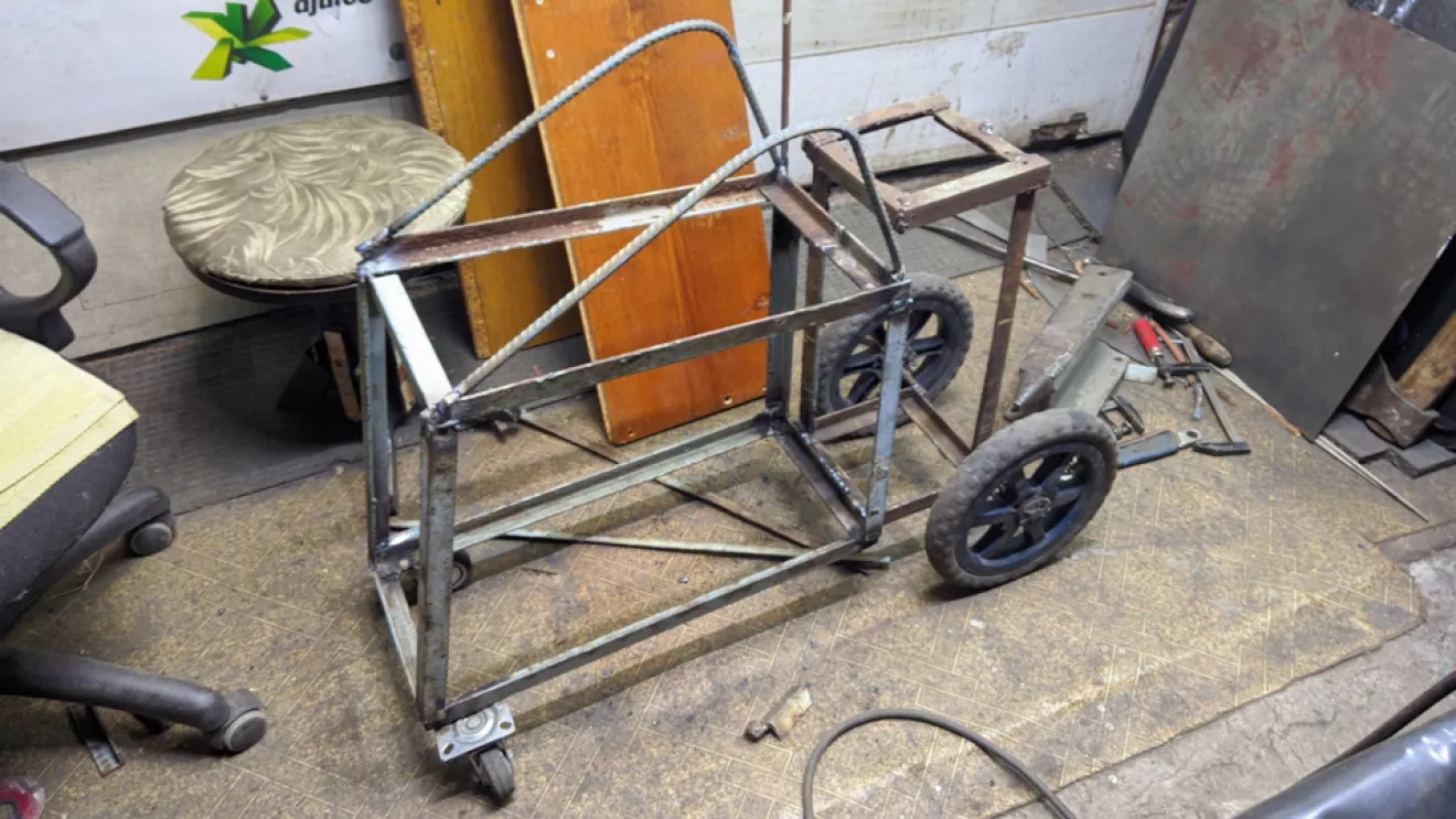 Две недели назад решился сделать удобную приспособу себе в гараже — каталку для полуавтомата!