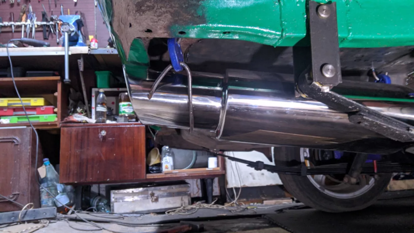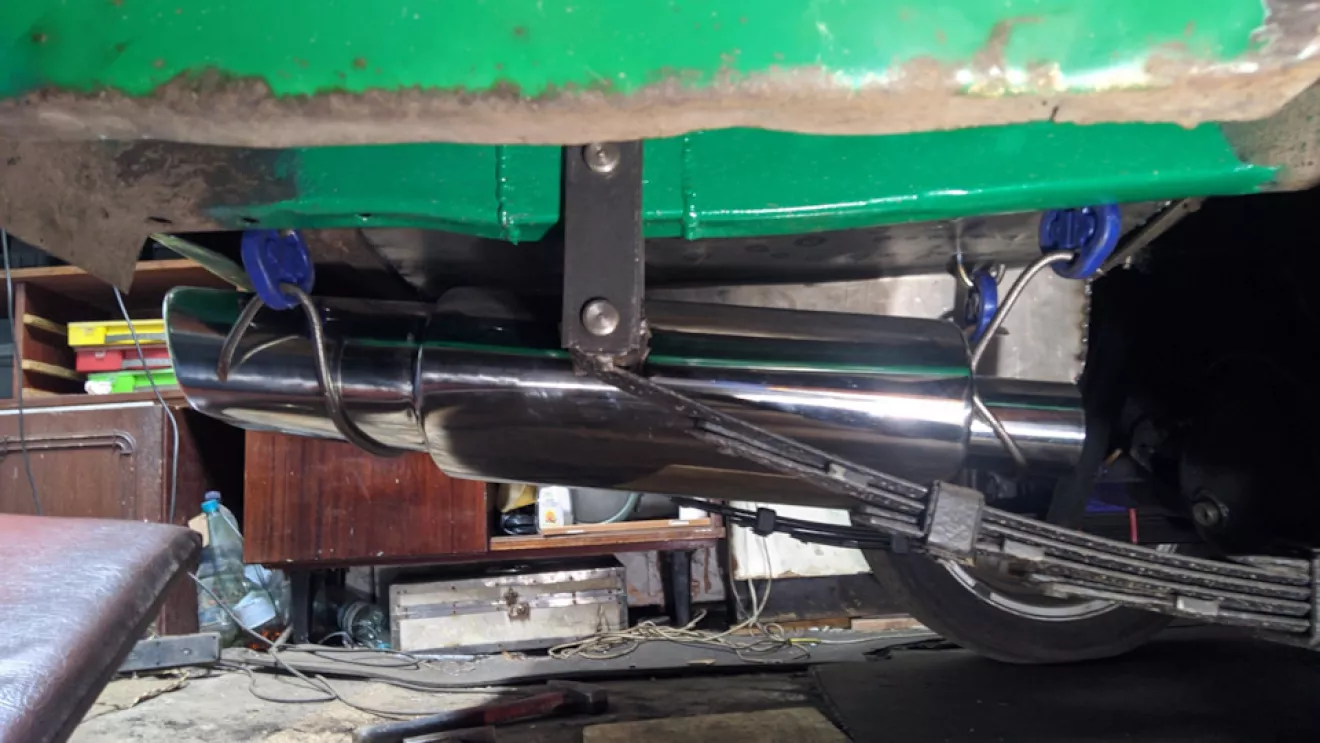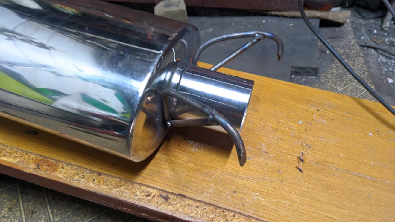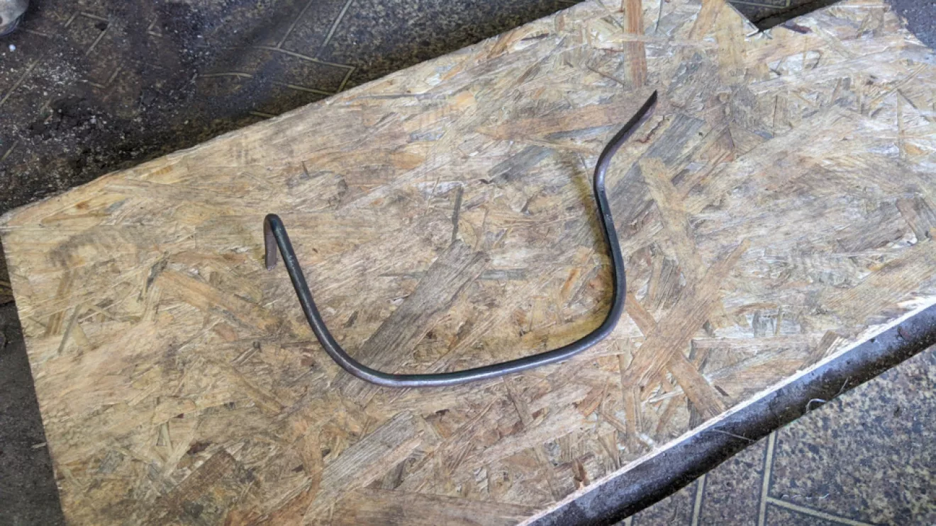 Изначально, чтобы было за что цеплять резинки глушителя, выгинаем с 6мм прута крючки. Каждый по разному… Сверлим отверстия в кузове и в нише (в прошлом бензобак):