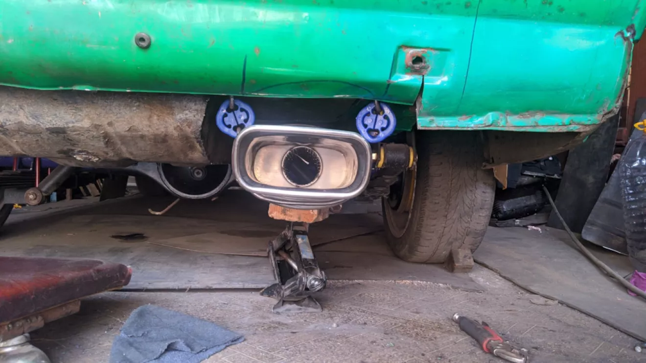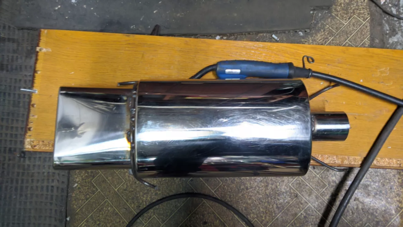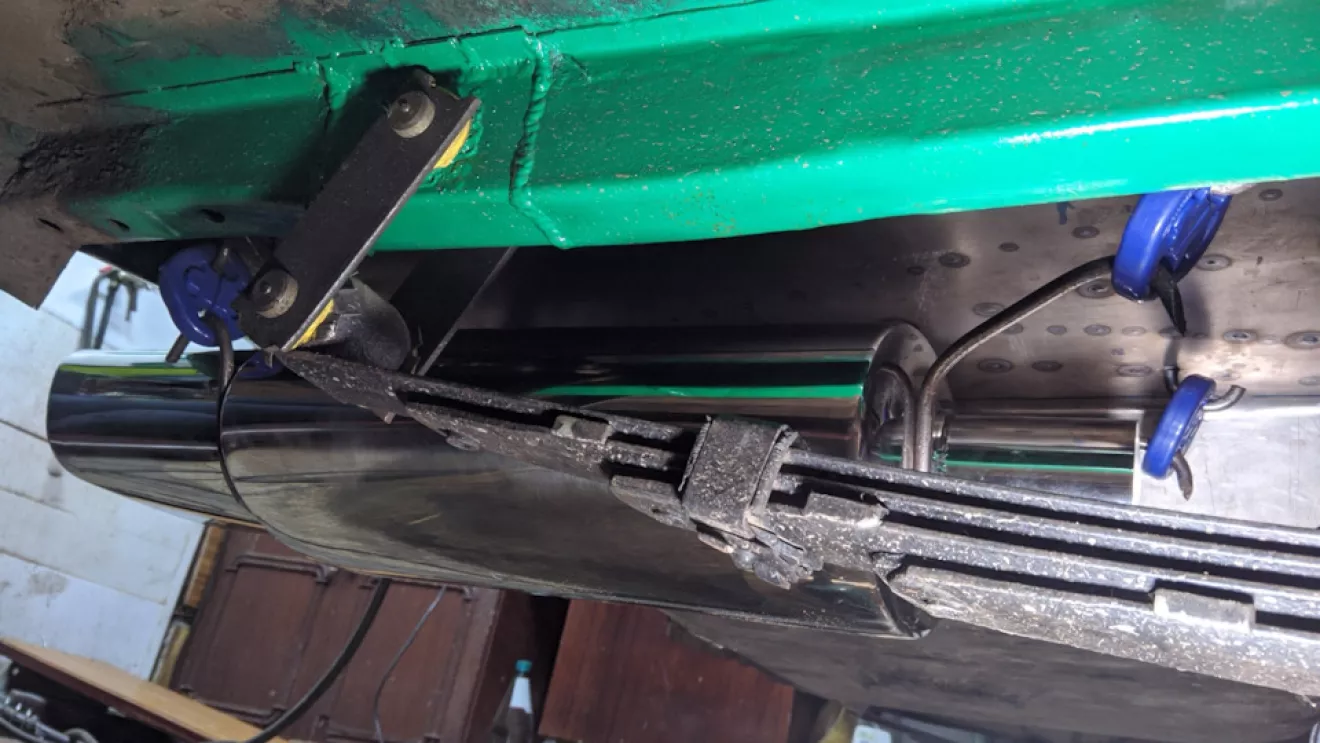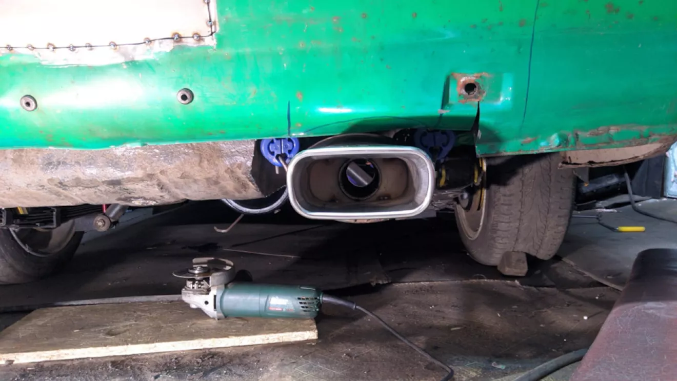 Изначально, чтобы было за что цеплять резинки глушителя, выгинаем с 6мм прута крючки. Каждый по разному… Сверлим отверстия в кузове и в нише (в прошлом бензобак):