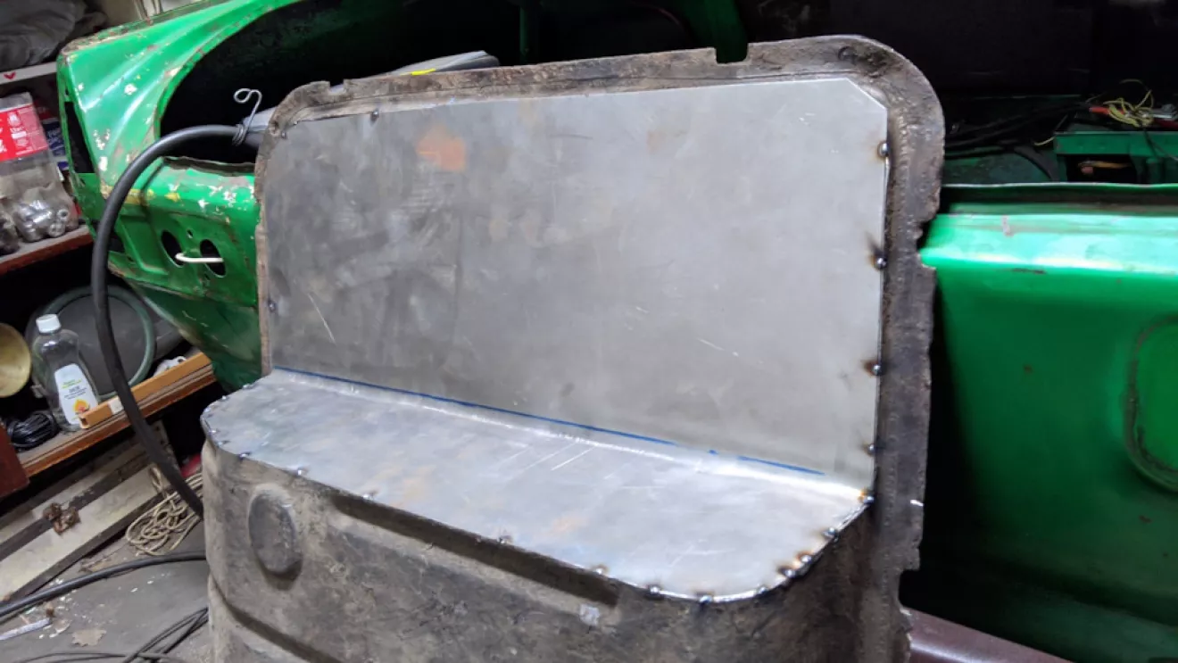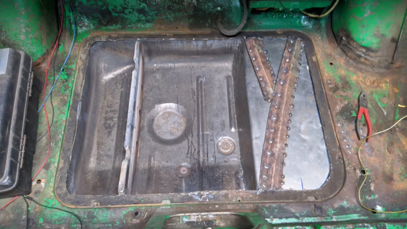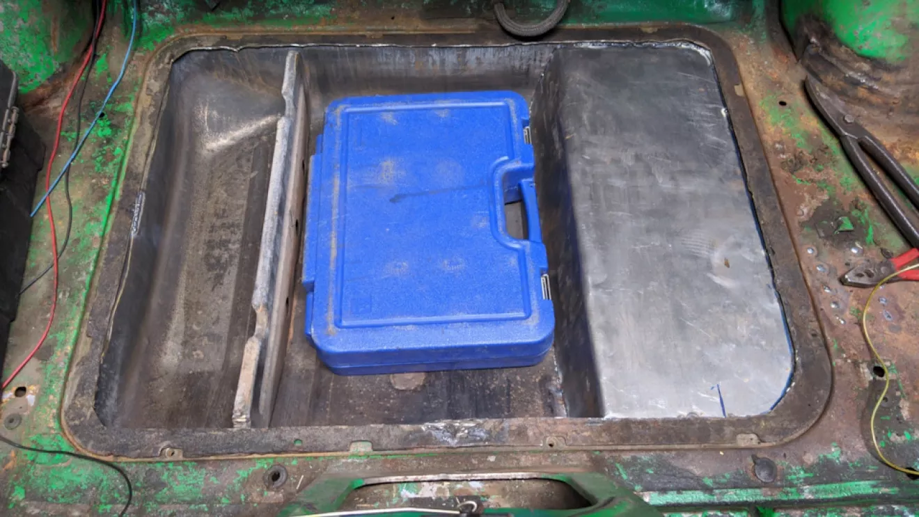И я конечно ничего лучшего не придумал, как поселить его в части ниши для инструмента (бывший бензобак)!