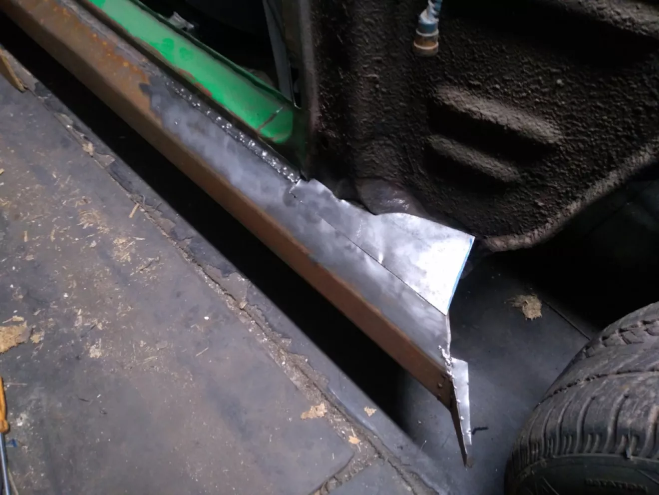 Высота порога получилась примерно 200мм. Ширина порога получилась более 200мм. Порог по сравнению с порогом у джипов идентичен! Как-то видел на канале у Академига, как они разрезали рендж Ровер! Там алюминиевая рама. Ширина и высота порога примерно идентичны у нас.