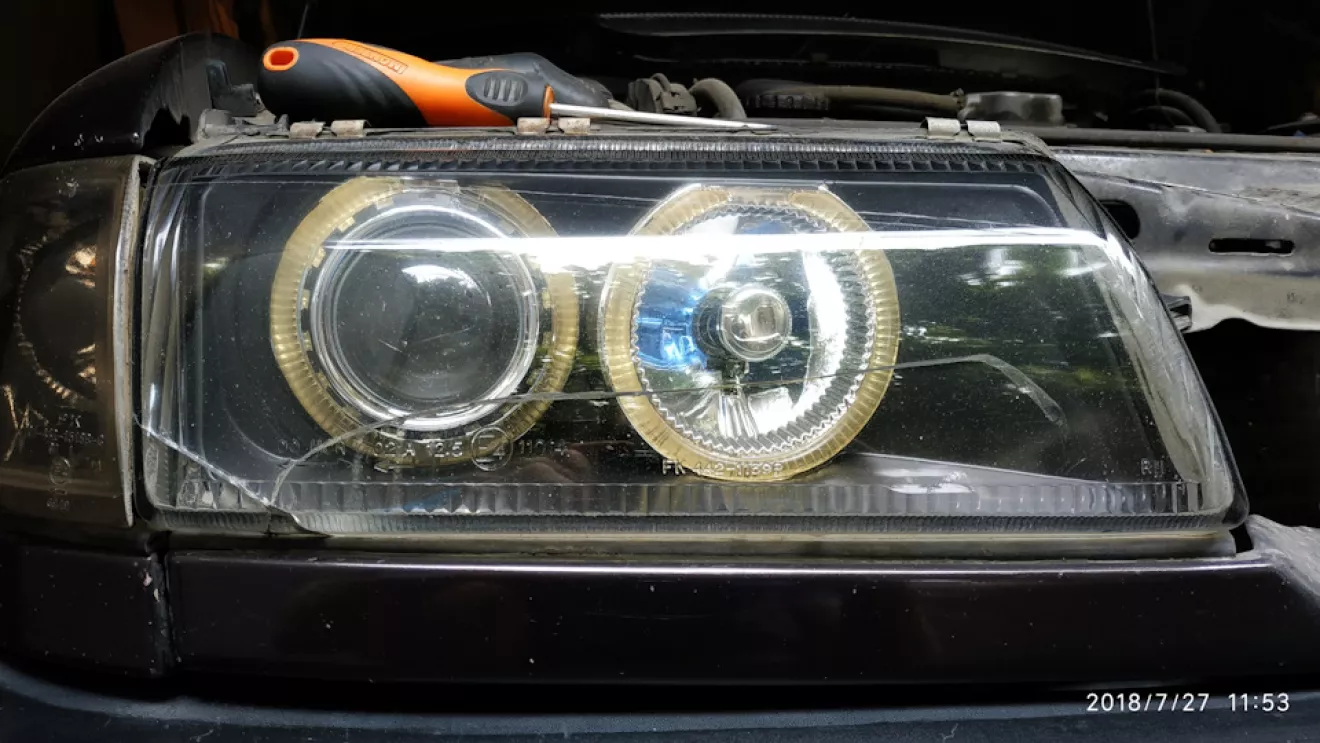 Очень давно не писал так как с машиной нечего не делал, ничего не беспокоило. Но очень давно меня раздражало лопнутое стекло правой фары. Кто сталкивался тот знает что это стекло найти практически невозможно, акрил я не хотел чтобы оно не пожелтело. Пару дней назад лазил на OLX и зашёл в раздел "vektra a" и опа стекла, сразу набрал и они у меня. Но стекла какие-то странные я таких ещё не видел, по середине две полоски, так мне даже больше нравится. За 400гр. я думаю это шара).