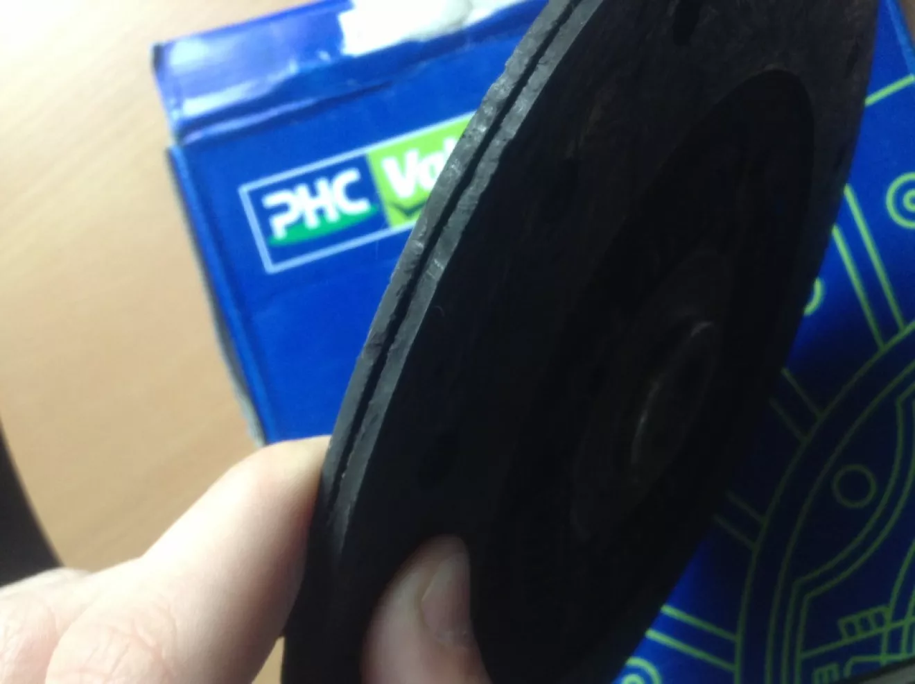 Я вас, кстати, в прошлой записи дезинформировал относительно цены на это добро. Я писал о 300$, может оно так и окажется, если брать оригинал, но мы взяли неоригинал Valeo. В общем корзина, диск и выжимаемой подшипник обошлись всего в 100$. Вернулись в сервис и пошло-поехало… Оказалось, чтобы совершить замену всего этого, нужно разобрать чуть ли не пол машины. Сняв коробку, взглянули на маховик и поняли, откуда был такой громкий стук… Приготовьтесь… Оказалось, что все болты на маховике закручены так слабо, что откручиваются пальцами, а один и вовсе уже держится на божьем благословении. Хорошо, что он не упал, а то страшно даже представить, что бы произошло, если бы он начал там все бить. Весело. А еще заглушка на блоке оказалась прогнившая настолько, что ее проткнули ножницами, еле нажав. Как бумага, короче.