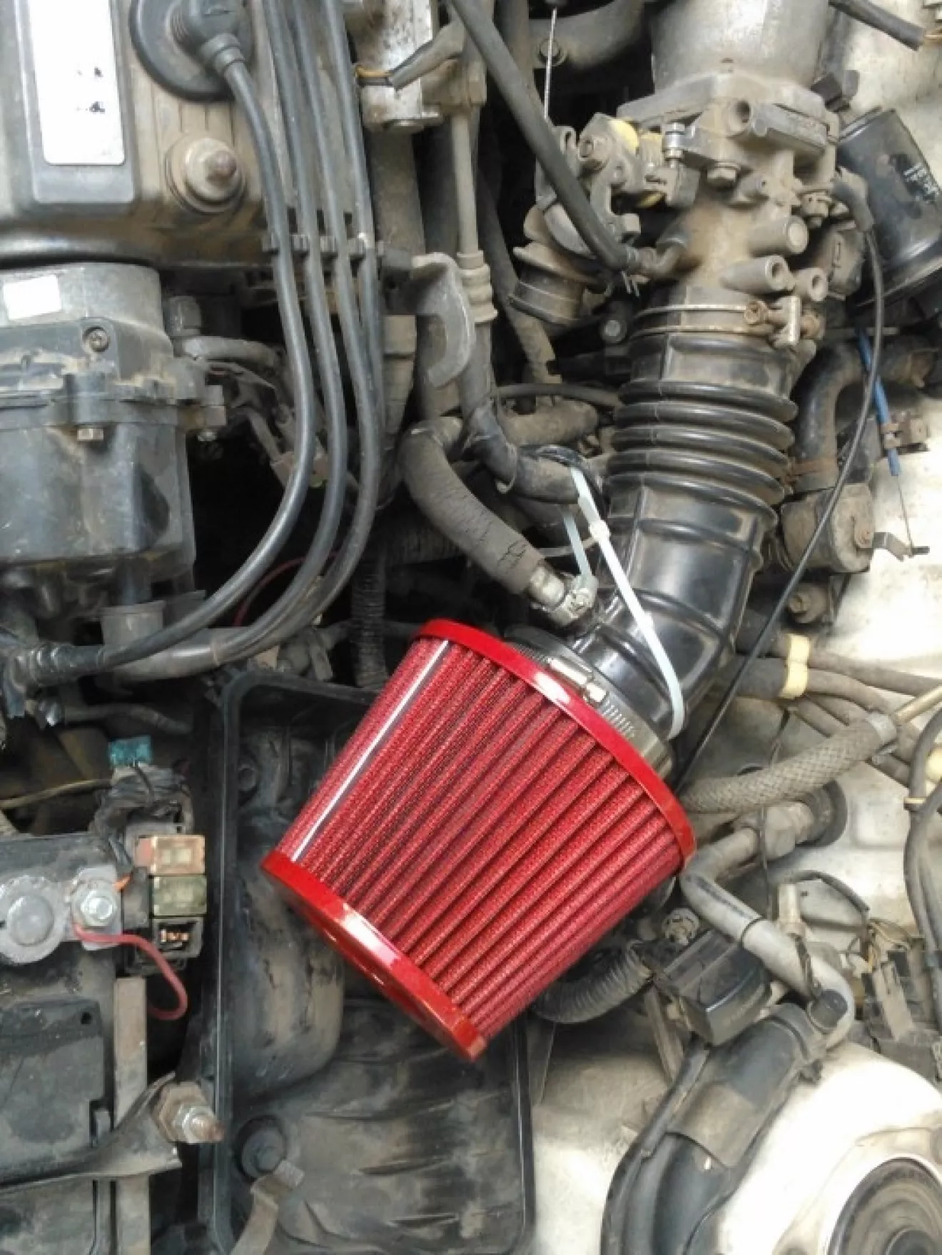 Вооооот, а еще ни с того ни с сего купили фильтр нулевик (20$), уже давно хотел, но как -то обходили эту затею :) Теперь +пару лошадок, но естественно, не чувствуешь. Зато звук очень изменился, прям такой свист при нажатии педальки появился, в самом начале, похож даже ну блоуофф) Круто, еще и красного цвета, подкапотка круче смотрится ))