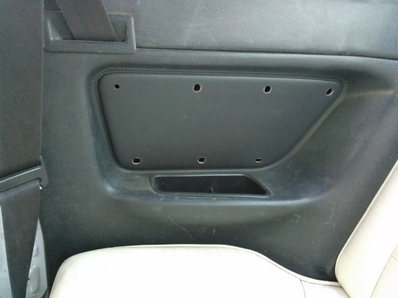Собственно, сейчас их ставить не будем, сначала обязательно решим проблему капризных колхозных стеклоподъемников, купим для них новые удобные кнопочки, заново затонируем машинку, и только тогда уже крепко оденем, чтобы потом уже не трогать попусту. Еще сделали сзади панельку, тоже обшили крокоальбиносом, а то с одной стороны только была.