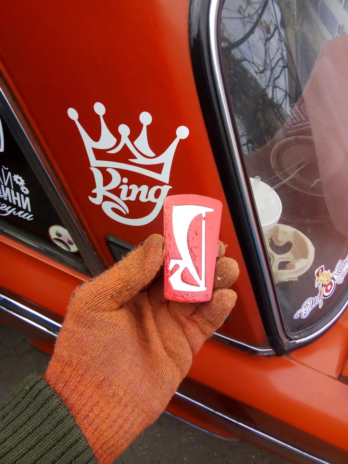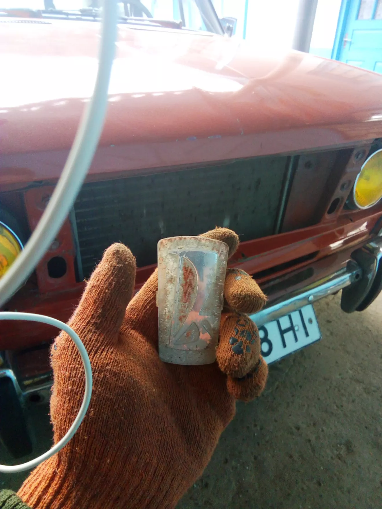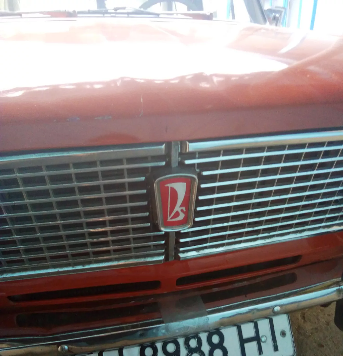 Очень уж бесил меня этот значок, от солнца он потерял свою краску проще говоря он просто выцвел, так вот снял я решетку, открутить его я не смог болт проворачивался полностью, я звял ножик и аккуратно снял. Красный и белый лак для ногтей, шлифовочная бумага и хорошее настроение)
