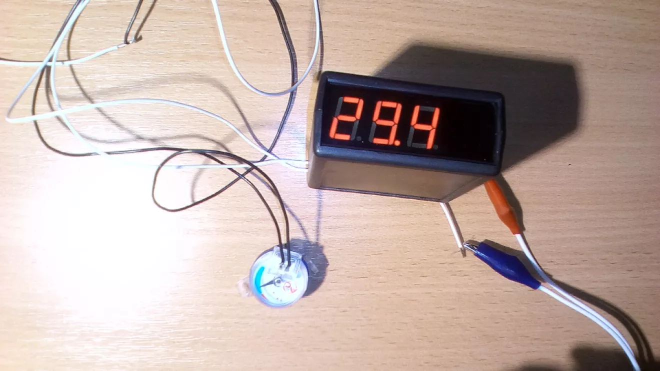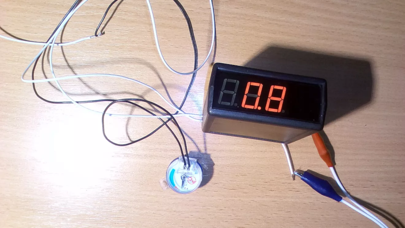 Первый вариант был изготовлен из двух контактного датчика на 50 кОм (внутри необходимо было перепаять один резистор), повышающего модуля и цифрового вольтметра, получилось неплохо, показывал объем в литрах.