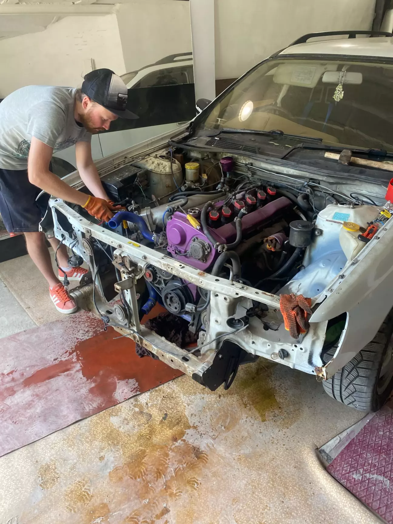 після сварки кузова, я забрав назад Ніссан, бо одразу не домовлявся із майстром на фарбування кузова ! Думав може це зробити на наступний рік вже ! Але вирішили вже добити це все діло в цьому році !! Тому забрав Ніссан на декілька тижнів, поки Ігор зробить наступну машину по черзі, а я поки дістав двигун і розібрав кузов під фарбування !!