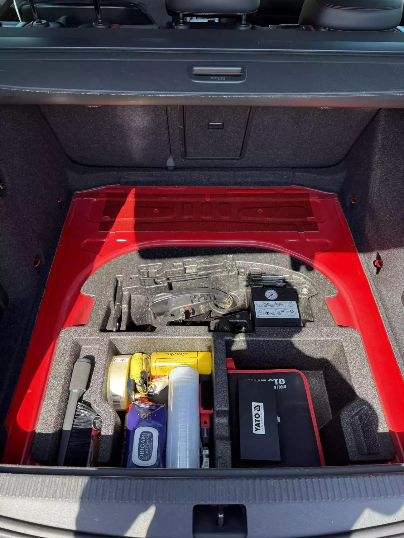 Оббивка ніші запаски Golf 7 5G9863544BCA9. Ідеально підійде для запаски,а не для великого органайзера,трохи не до кінця сідає.В планах є поставити повноцінну запаску.А так то може бути🙂