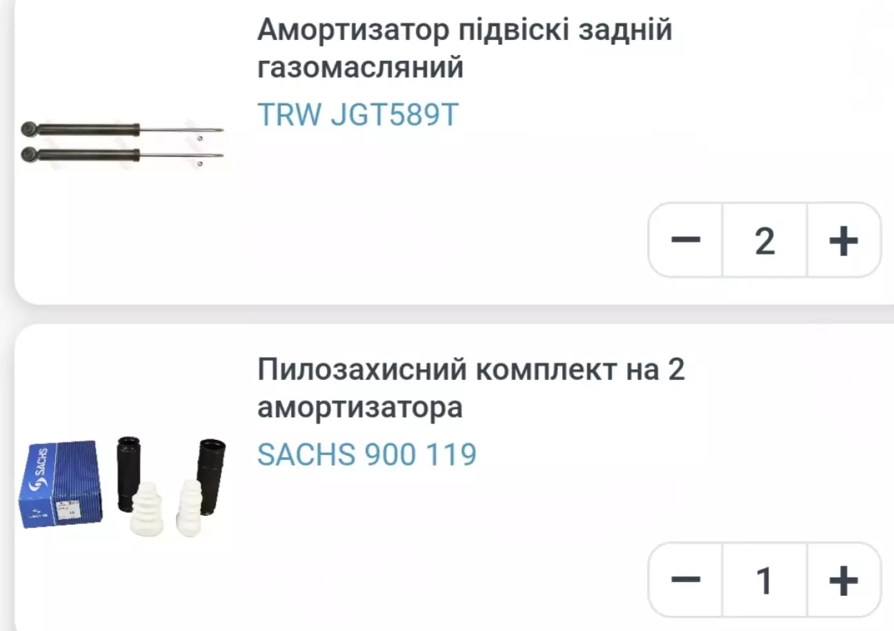 А от захисний комплект (відбійники/пильовики) взяв саме від Sachs, бо в них краща пінополіуретану з якого зроблено відбійник.