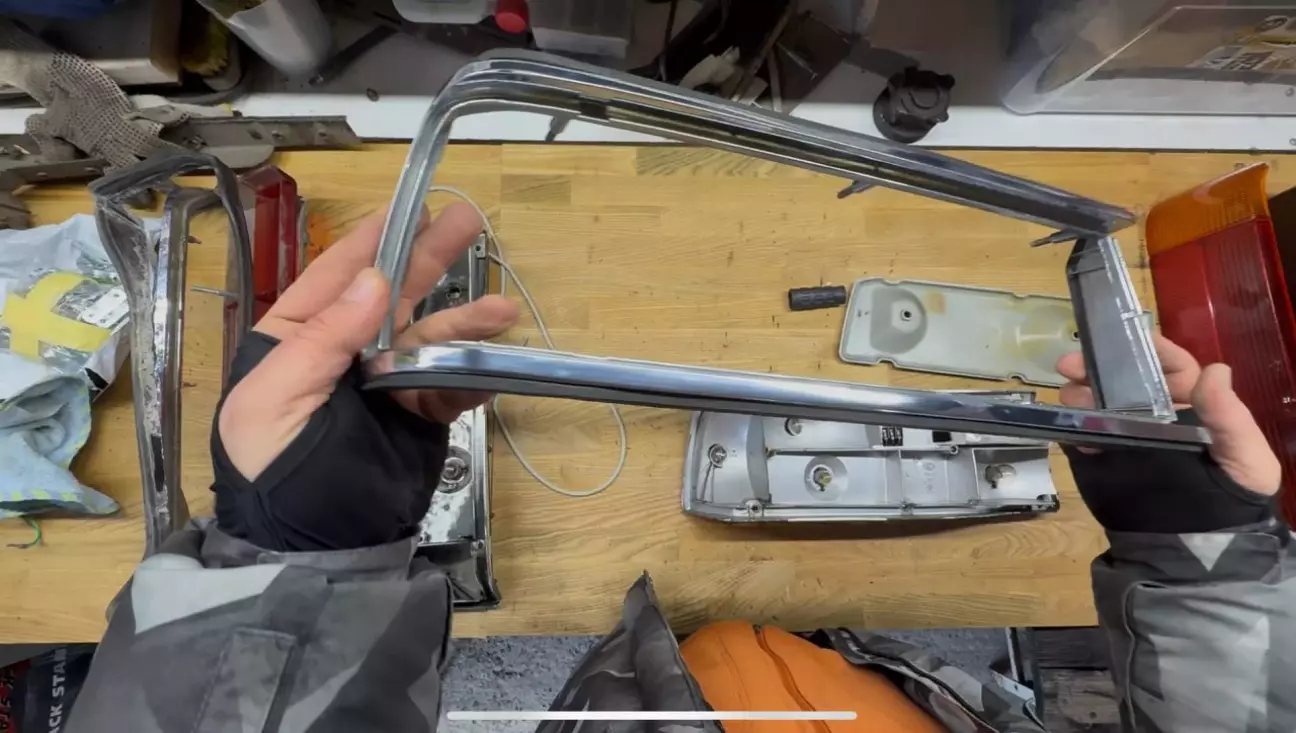 Далі відкручуються 6 гайок з багажнику і ліхтар розбирається на хромовану рамку та корпус ліхтаря.