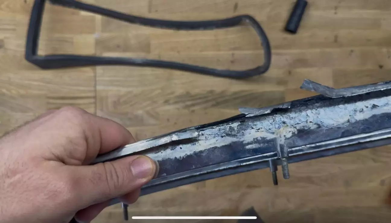 Я чесно намагався щось з нею зробити, дуже обережно зняв ущильнювач, бо його теж не знайти. Але хромована рамка дуже сильно прогнила. Настільки сильно, що її аж покрутило та вивернуло ущильнювачКромка фактично розклалась на атоми...