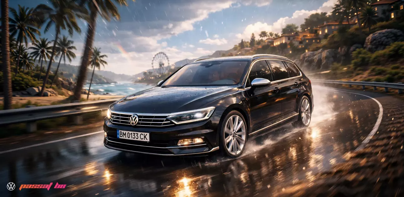 ⚡ ChatGPT (Додаємо фото свого авто) / Промт - Зроби моє авто в стилі гри Forza Horizon. Авто (припарковане в гаражі / мчить по дорозі...), (зима / літо, легкий пухнастий сніг, легкий дощ...), будь-яка локація схожа на локацію з гри (або ваша фантазія, наприклад - дорога серед японського саду, пелюстки сакури розлітаються навколо авто, захід сонця, мокра дорога...), освітлення як в грі в стилі Unreal Engine, формат 18:9