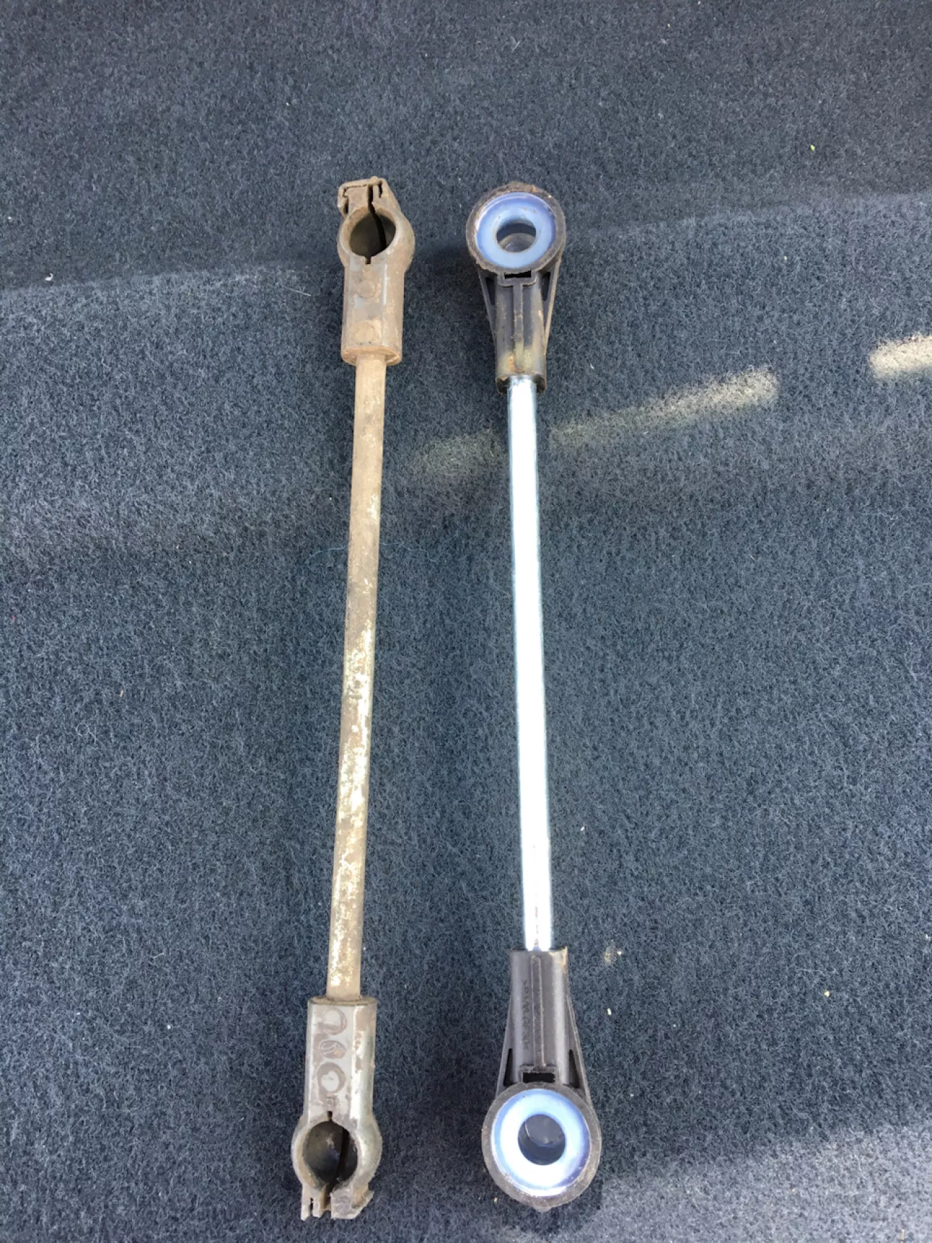 Заменил я эту тягу летом, но решил написать только сейчас (хочу чтобы все что было сделано по авто было здесь)). Однажды заметил что тяга стоит с Авео. Мне это не понравилось). Приехав домой сразу заказал новую. Взял две — оригинальную за 20$ и китай (просто положил в багажник на всякий случай) за 5$. Когда пришли обе то разницы в них почти нет). Поменять было сложно — менял под гаражом и мешал редуктор ГБО добраться к нужному месту, все время выпадала с рук и падала на защиту под двигатель, доставал проволокой)) короче гемор ещё тот!) Но получилось). На фото оригинал и от Авео.