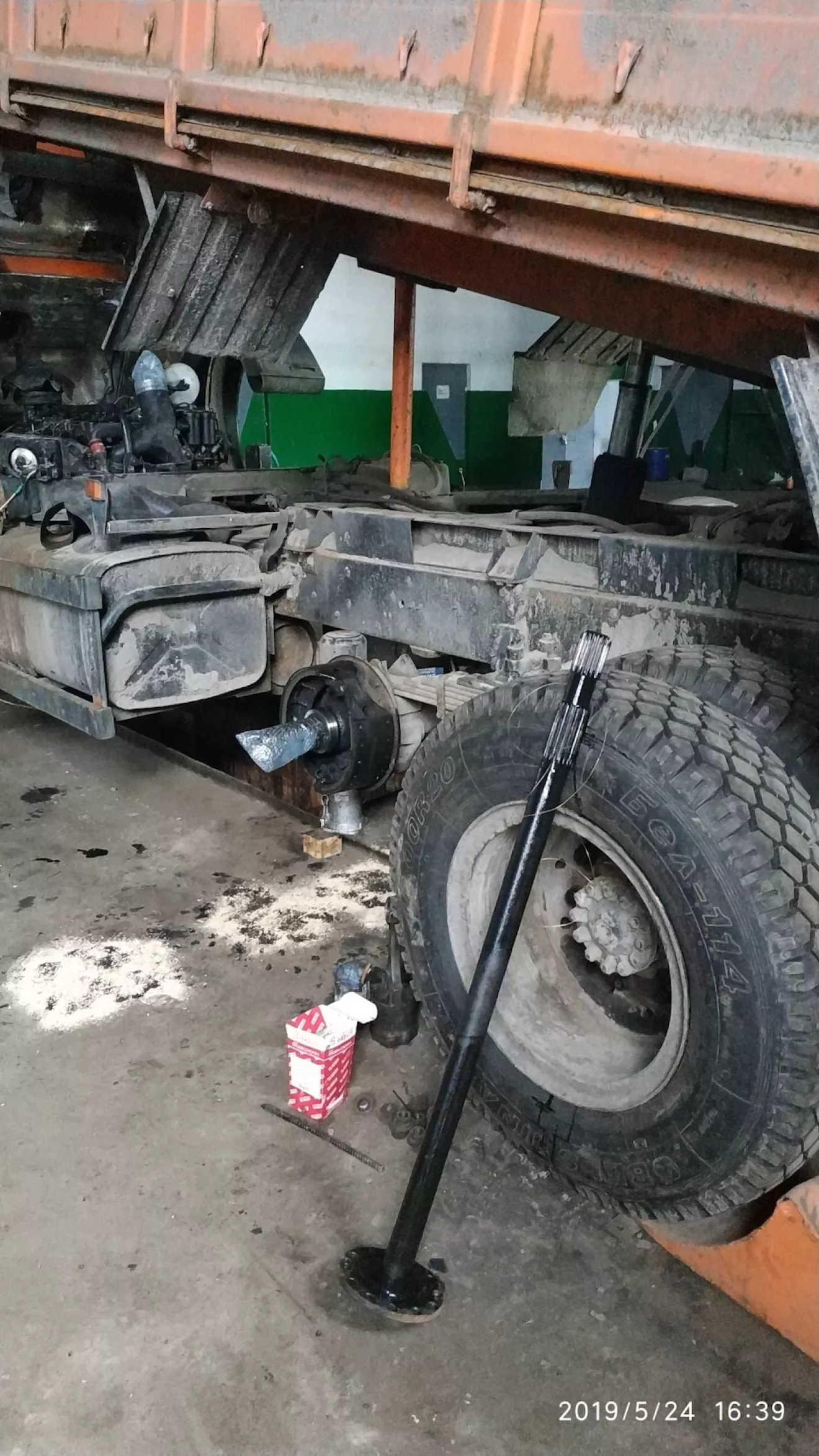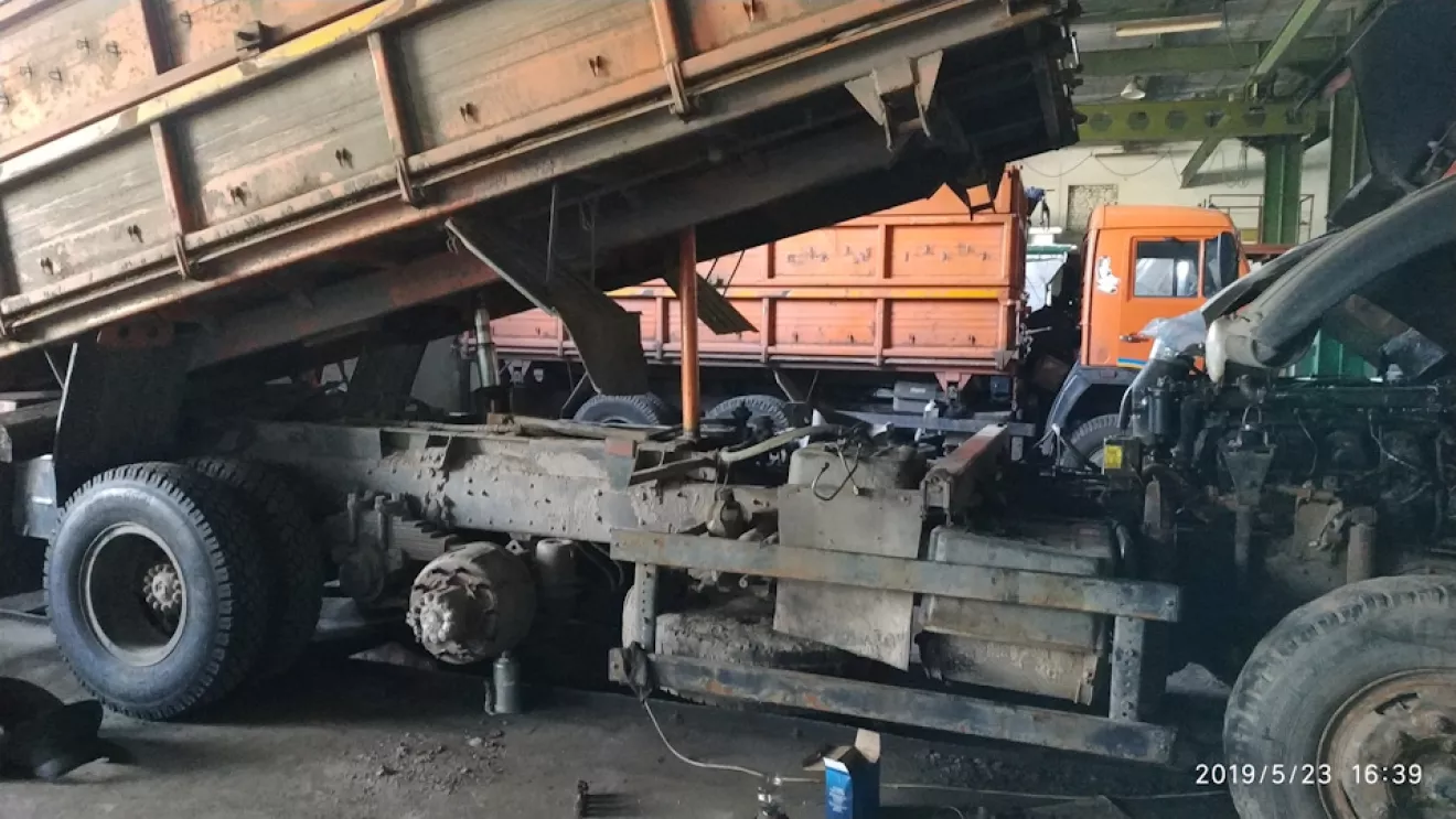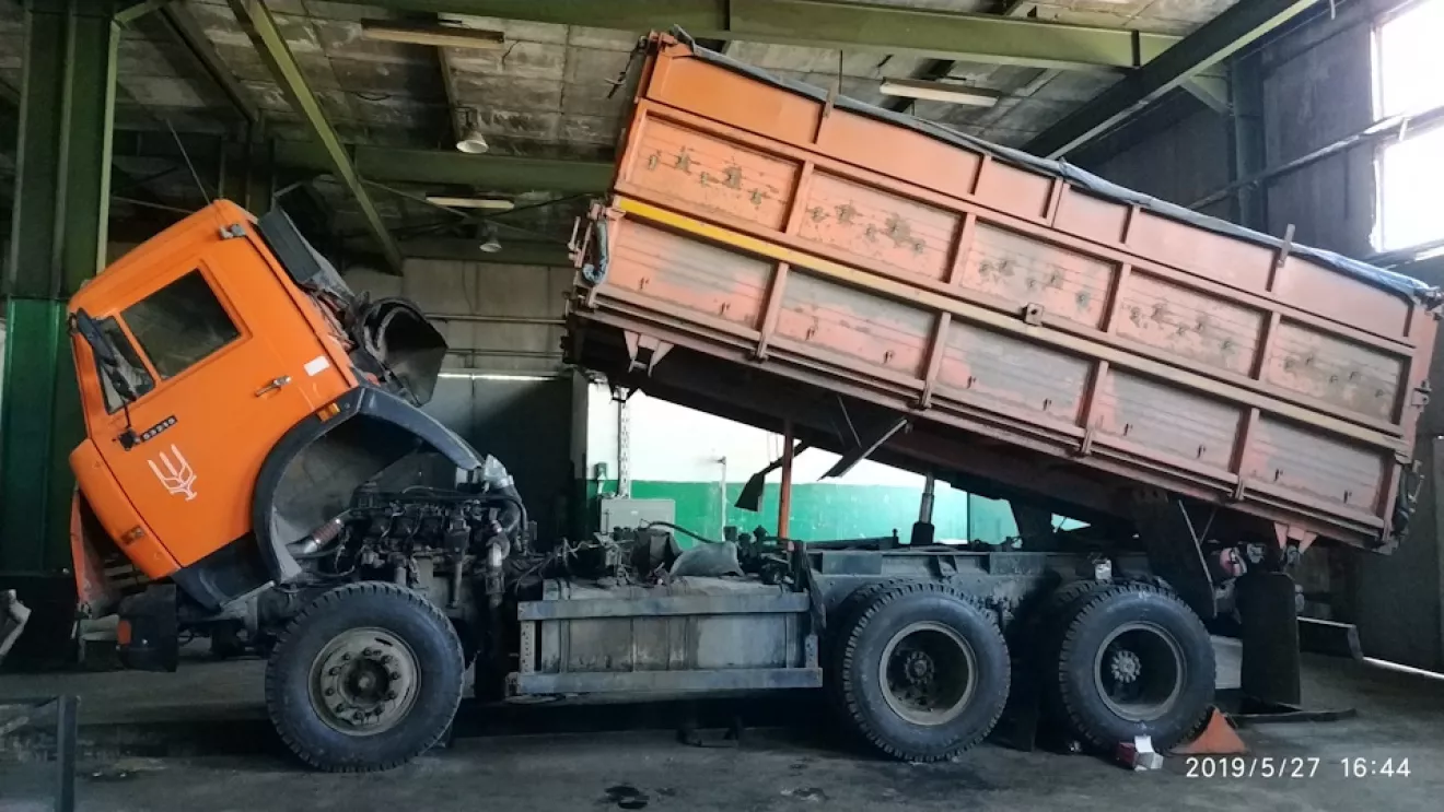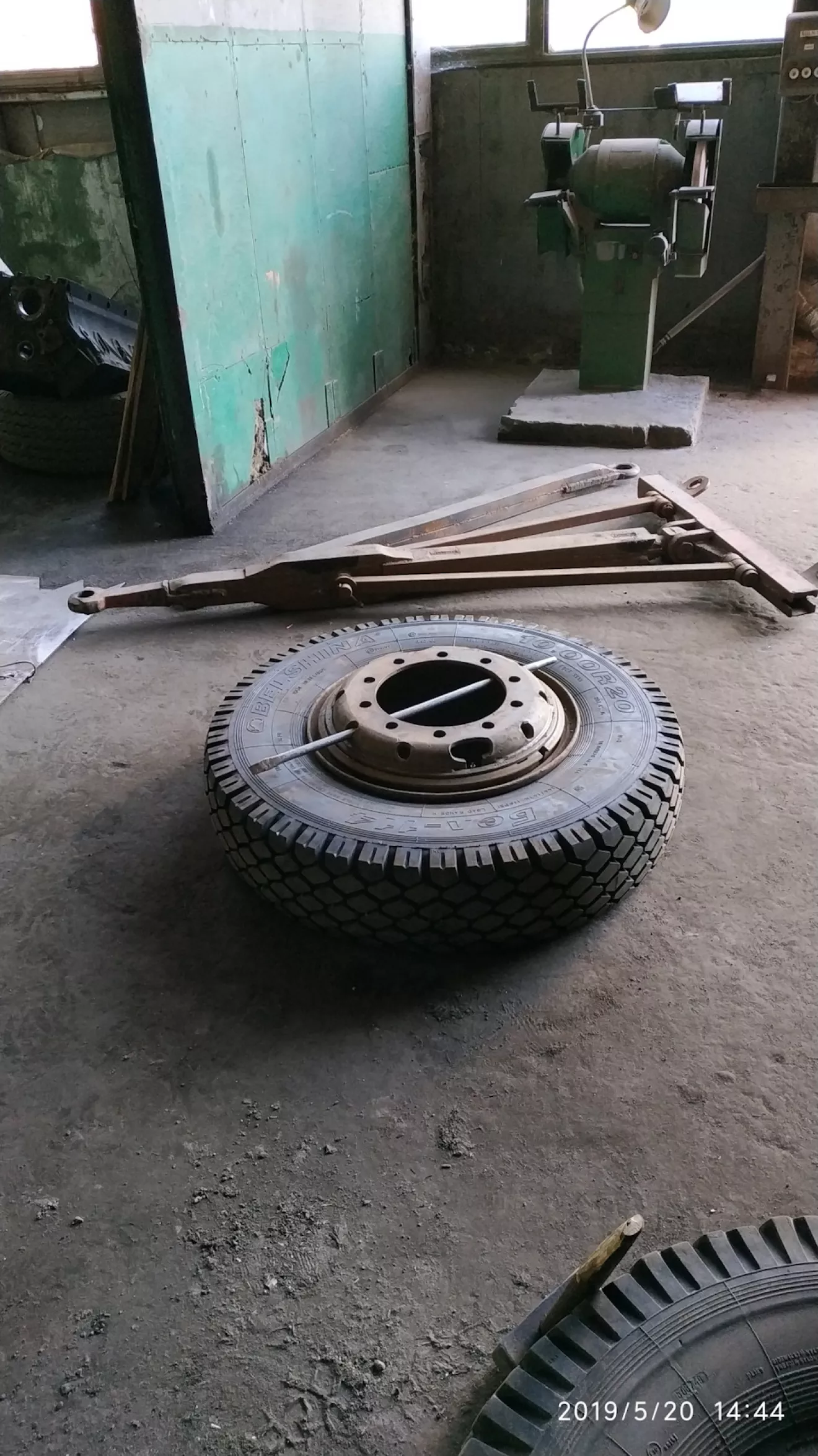 Во-первых мы полностью собрали двигатель и установили его на раму. Во-вторых начальство выделило деньги и приобрело для меня 10 новеньких колёс. Колёса недорогие (белшина), но зато новые. На протяжении всего этого времени я ковырялся в двигателе и попутно старался поменять все колёса. Кстати разбортировка и накачка шин это для меня отдельный вопрос. Так как до этого момента я никогда самостоятельно не не переобувал диски, мне на помощь пришли опытные водители с разными советами. В который раз я убеждаюсь, сколько людей столько и мнений. Всё самое нужное и ценное из ихних советов постарался запомнить и применить на практике. При накачке покрышек мнения также разделились. одни говорят мол качай колесо кольцом вверх, но вставь арматуру в отверстие диска, чтобы в случае вылета кольца она у ударилась в прутья и не слетело дальше положенного. Но я решил действовать по старому дедовскому способу. А именно качать покрышку, перевернув замочным кольцом вниз. Это безопасно.