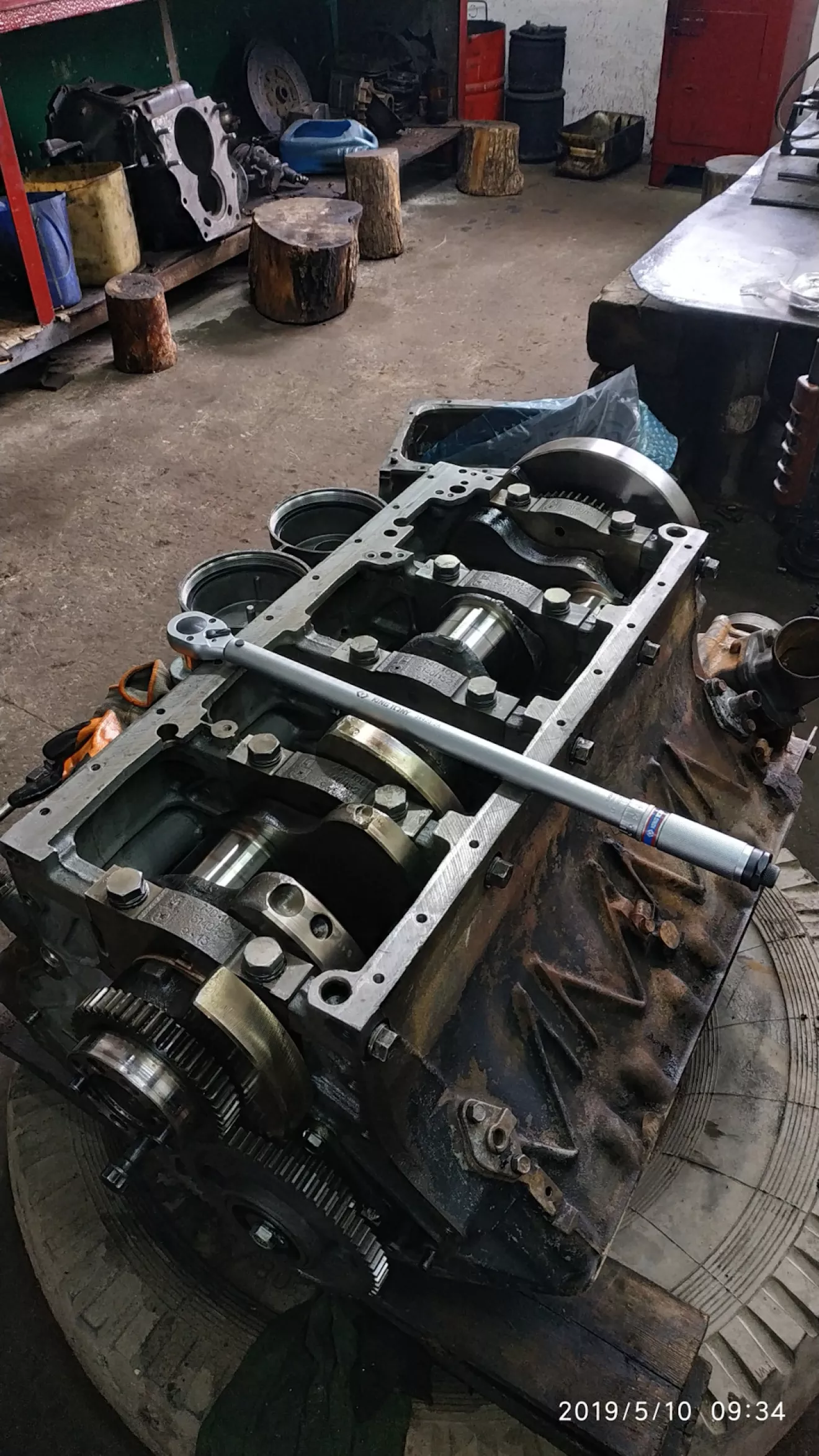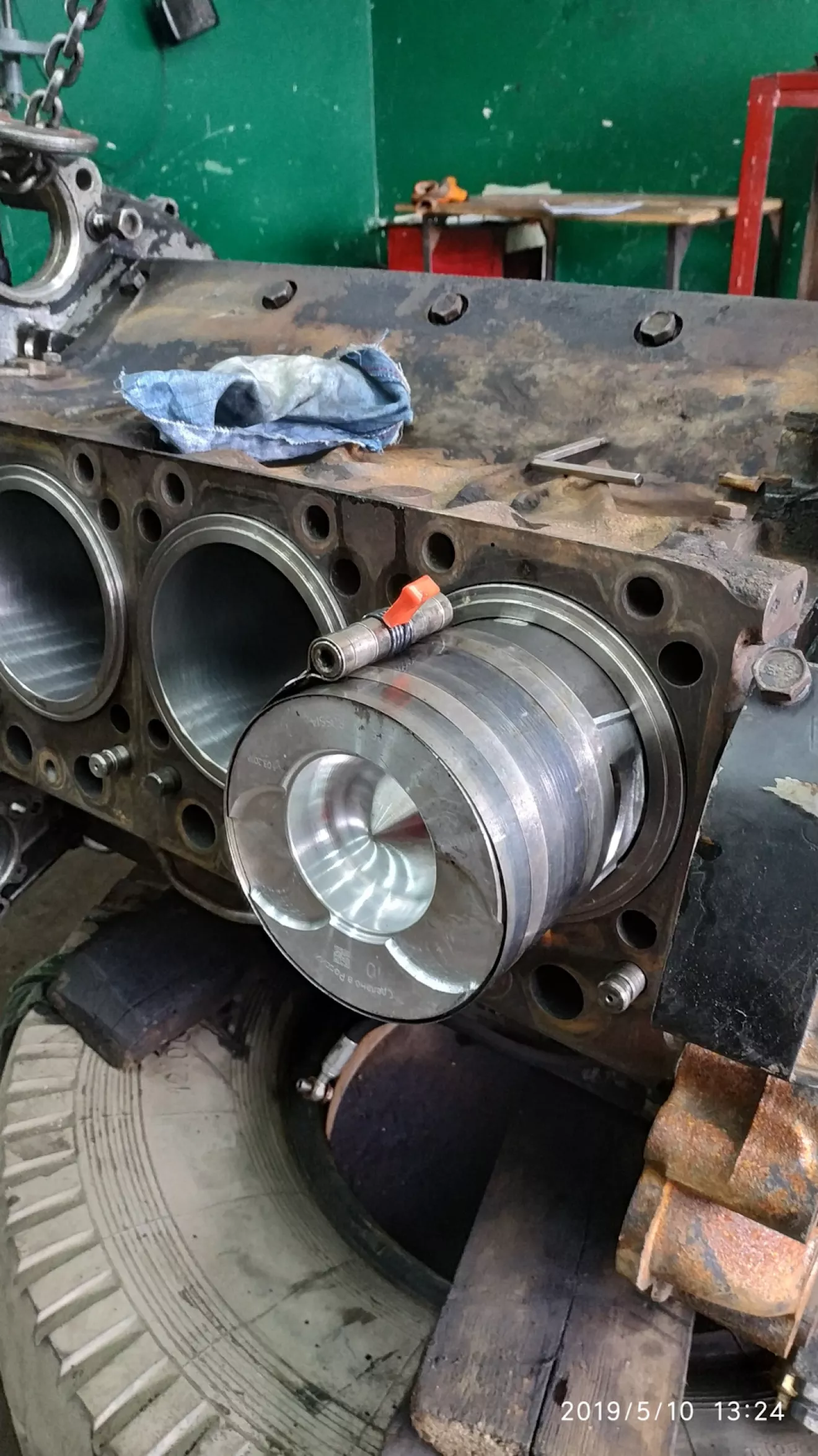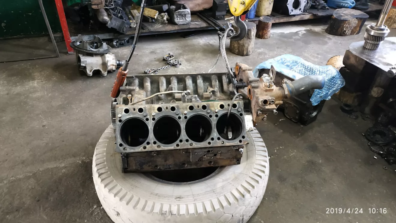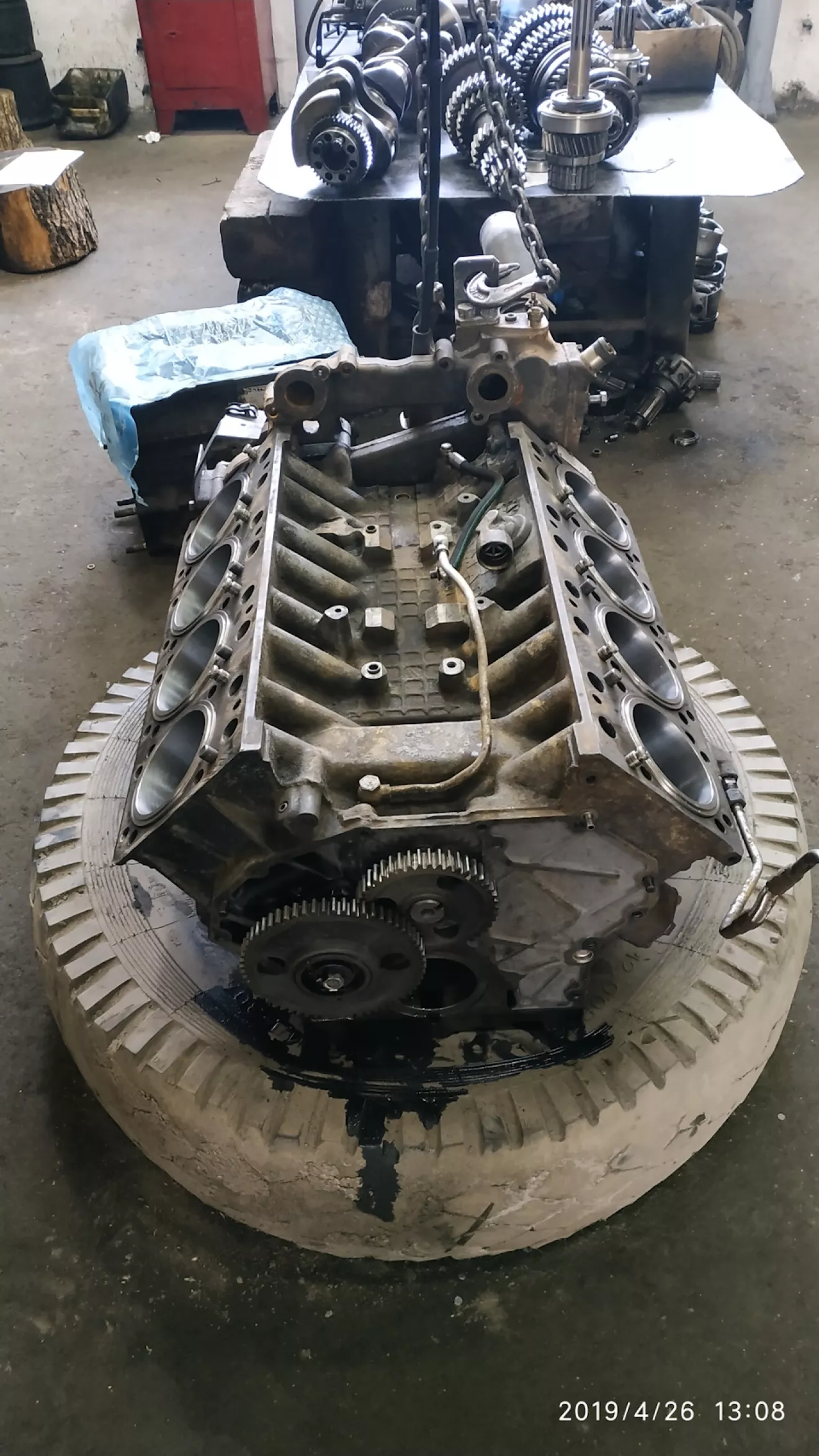 Стенда для сборки двигателей на предприятии не имеется, поэтому приходится собирать на обыкновенной грузовой шине. Это дико неудобно, но другого выхода просто нет. Хотя нет вру, приспособление можно сделать, но это никому не интересно. Все живут одним днём и не думают о будущем.