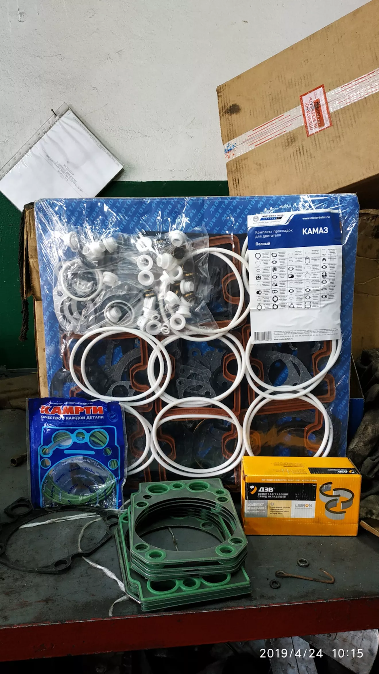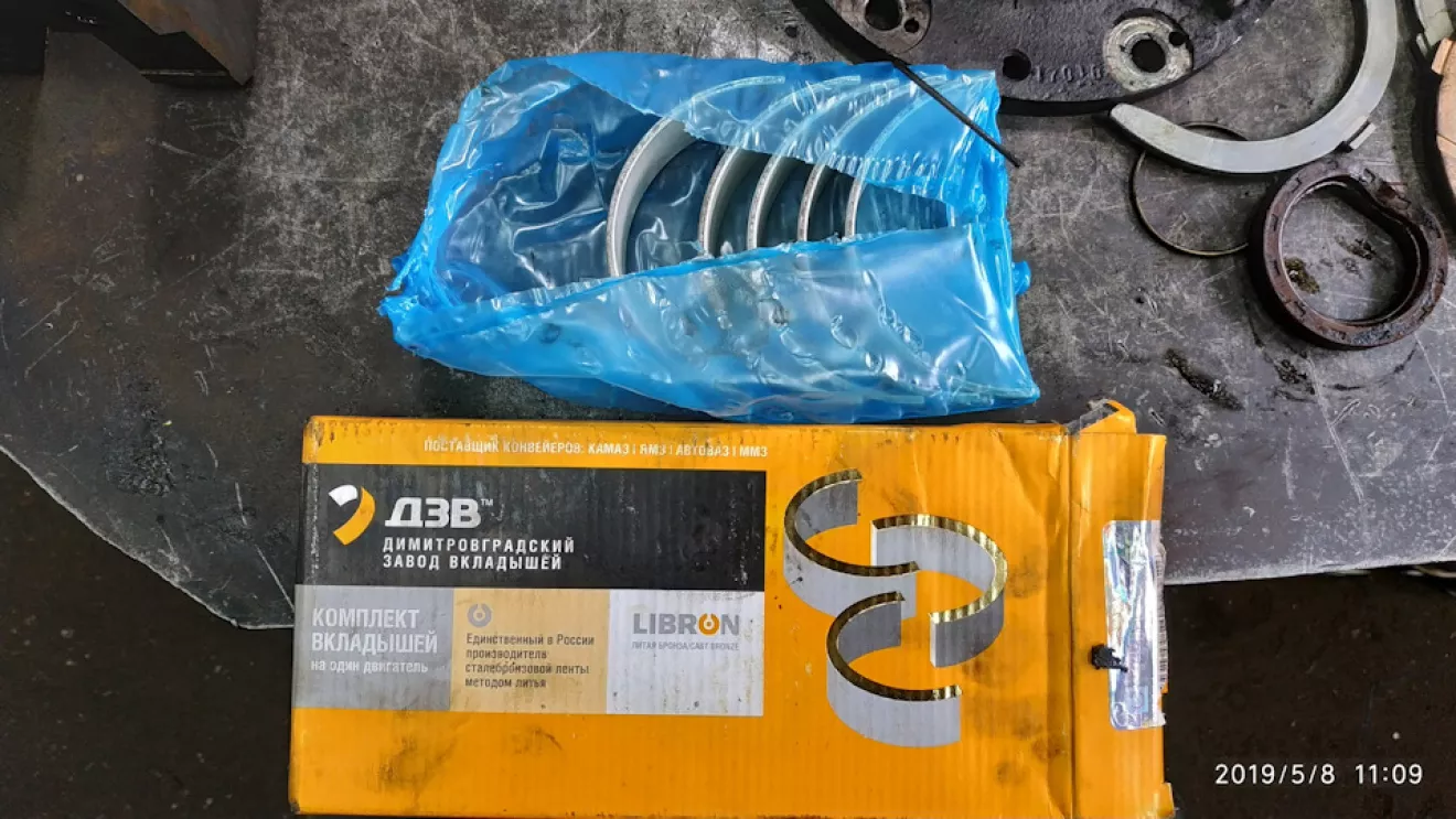Казалось бы всё готово к сборке двигателя, но всегда есть какая-то ложка дегтя. В нашем случае это оказалось заминка в поставке вкладышей коренных подшипников. Имея все остальные запчасти для сборки двигателя, без них начинать работу просто невозможно. И наконец спустя несколько дней запчасти нужны пришли.