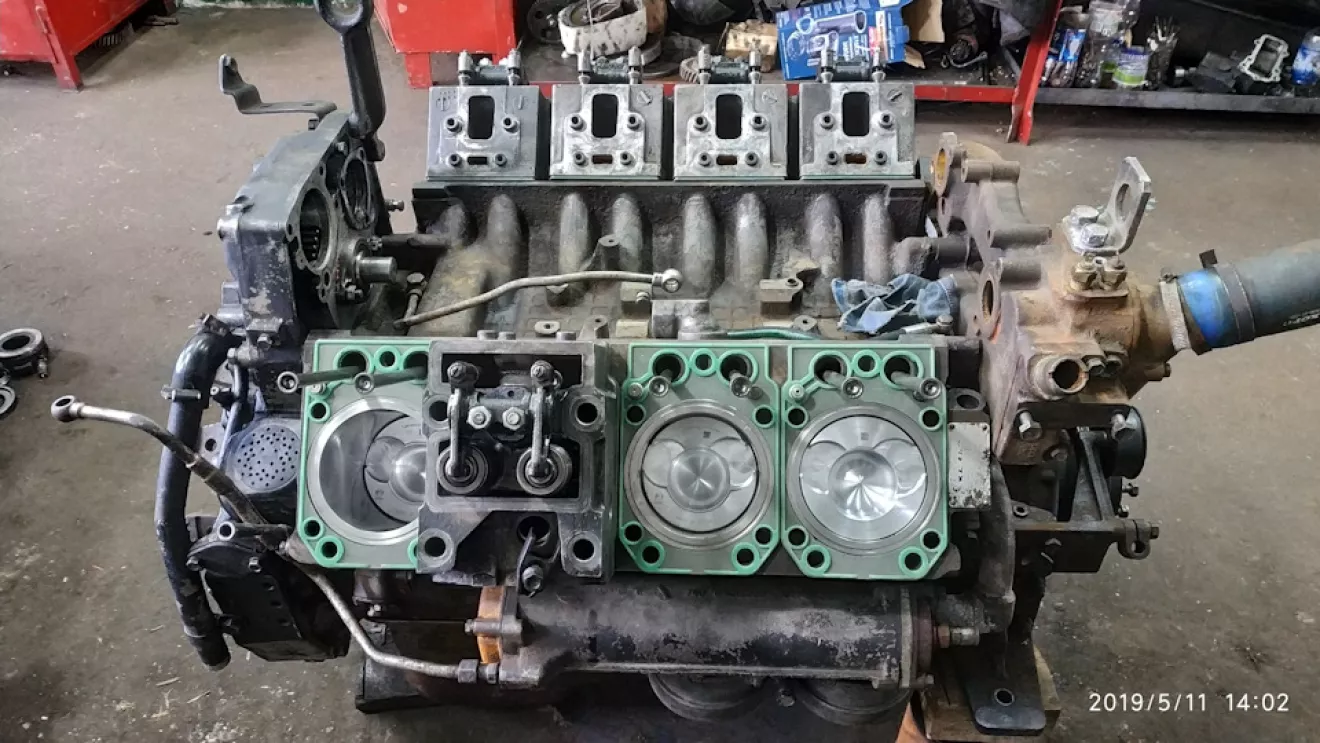 Вчера удалось установить и обтянуть все головки а также прикрутили сцепление. Думали устанавливать ТНВД но заметили, что сальник привода ТНВД в хорошем состоянии. Было решено его заменить. Хорошо хотя бы с ним всё решилось оперативно и запчасть пришла быстро. Казалось бы всё идёт хорошо, но мой коллега моторист попал в больницу и теперь я вынужден собирать двигатель один. Конечно мне подскажут и может быть что-то помогут, на всю основную работу придётся делать самому. Очень надеюсь всё сделать хорошо, чтобы двигатель не подвел.