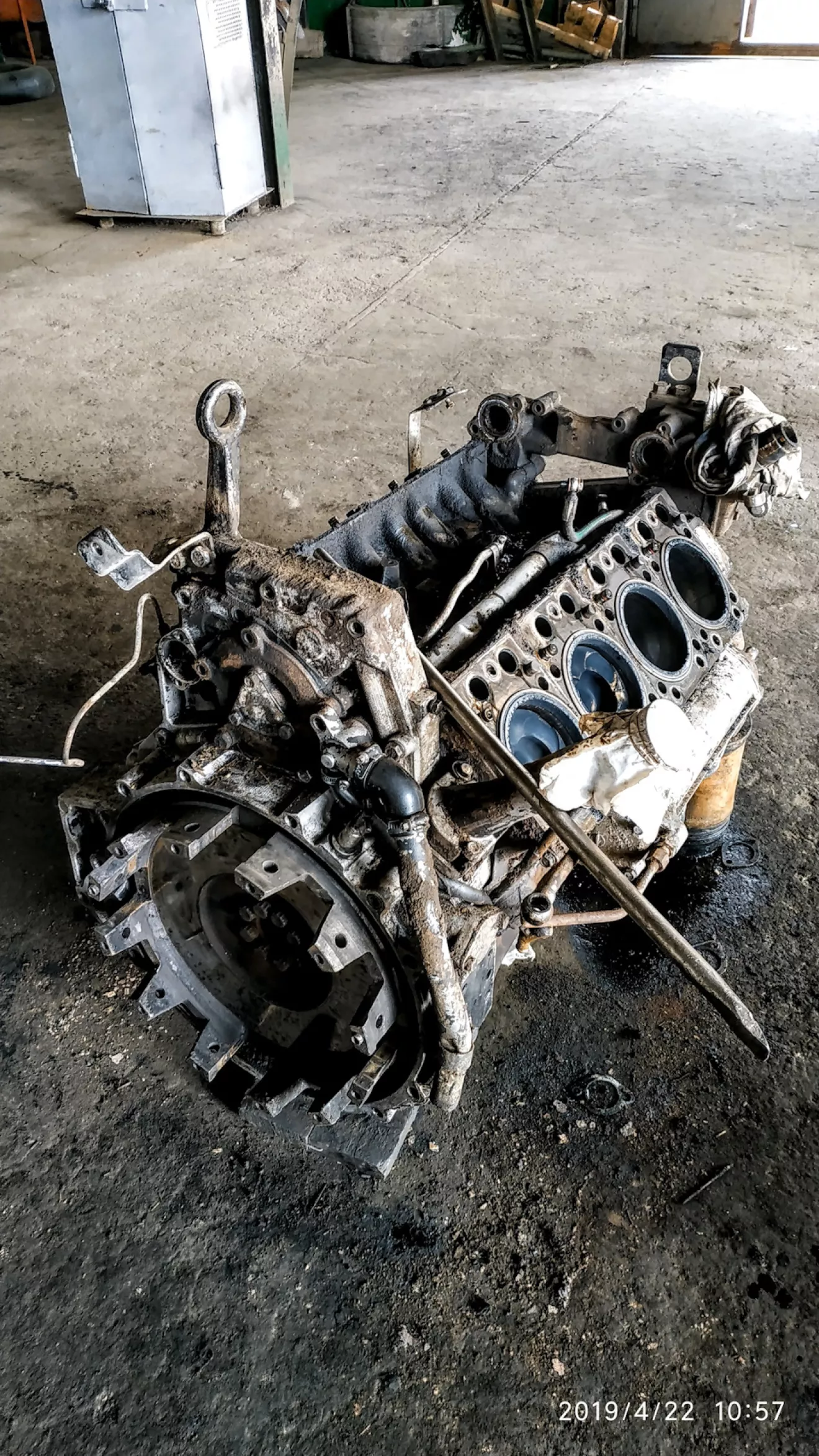 Из предыдущей записи мы помним, что двигатель из донора уже вытянут и готов к разборке. Понедельник… прекрасный день, чтобы серьезной работой. Из всех присутствующих, желание делать хоть что то полезное, наверное, было лишь у меня :) ходили, как сонные мухи. Интерес распирал изнутри и это лишь добавляло темп работы. Не успели опомниться, как настал обед. А после него работа, как ни странно, пошла еще быстрее. Этот двигатель ремонтировался давно и некоторые (болты на штанах) никак не хотели откручиваться. Повозились мы с ними долго. Но всё-равно 2 шляпки болтов сломали. Хорошо, что хотя бы по одному на каждую сторону. Так проще было стягивать выпускной коллектор. Думаю с двумя обломанными болтами на одном коллекторе мы бы провозились дольше. Хорошо, что всё так произошло.