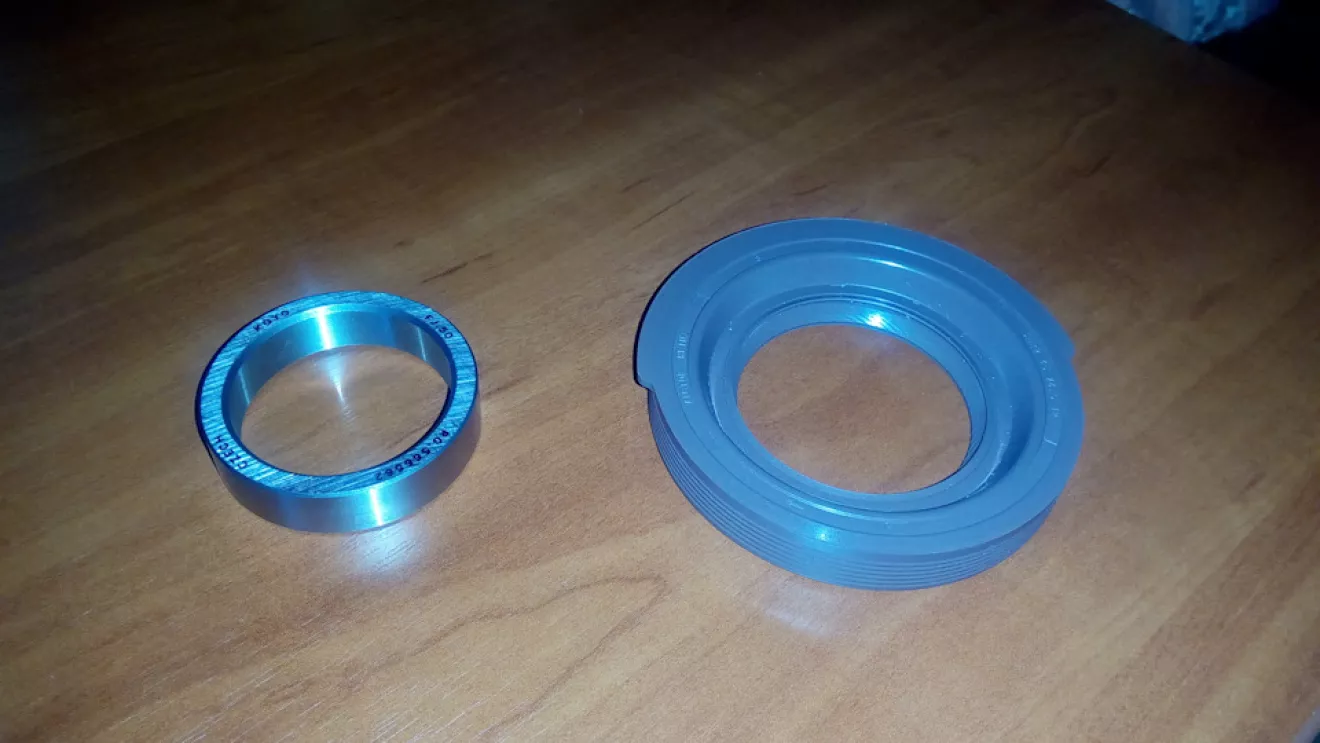 Добравшись до сальника, обнаружил там выработку на кольце. Под замену оба ушли. Втулка, зараза, не охотно снималась. Пришлось её съемников вытягивать. В остальном проблем небыло. Собрали всё благополучно. Так же на долив купил масло Manol Disel Extra 10W-40 полусинтетика. Залил до половины уровня по щупу.