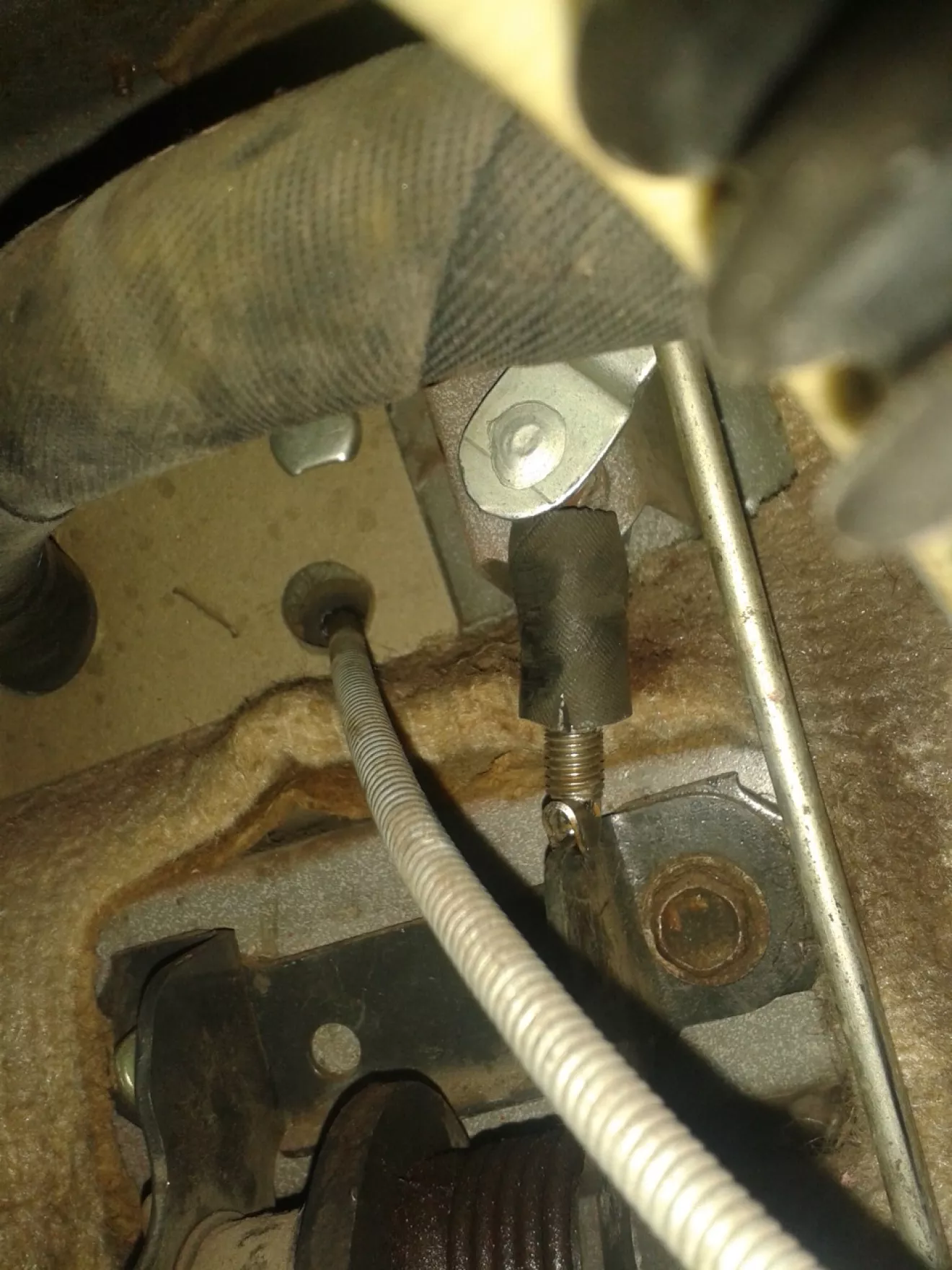 Другое дело было в салоне. Там меня ждал сюрприз о котором я никогда за время езды на машине и не догадывался. На стенке моторного отсека, где крепится тяга педали газа и проходит в подкапотное пространство есть крепление.
