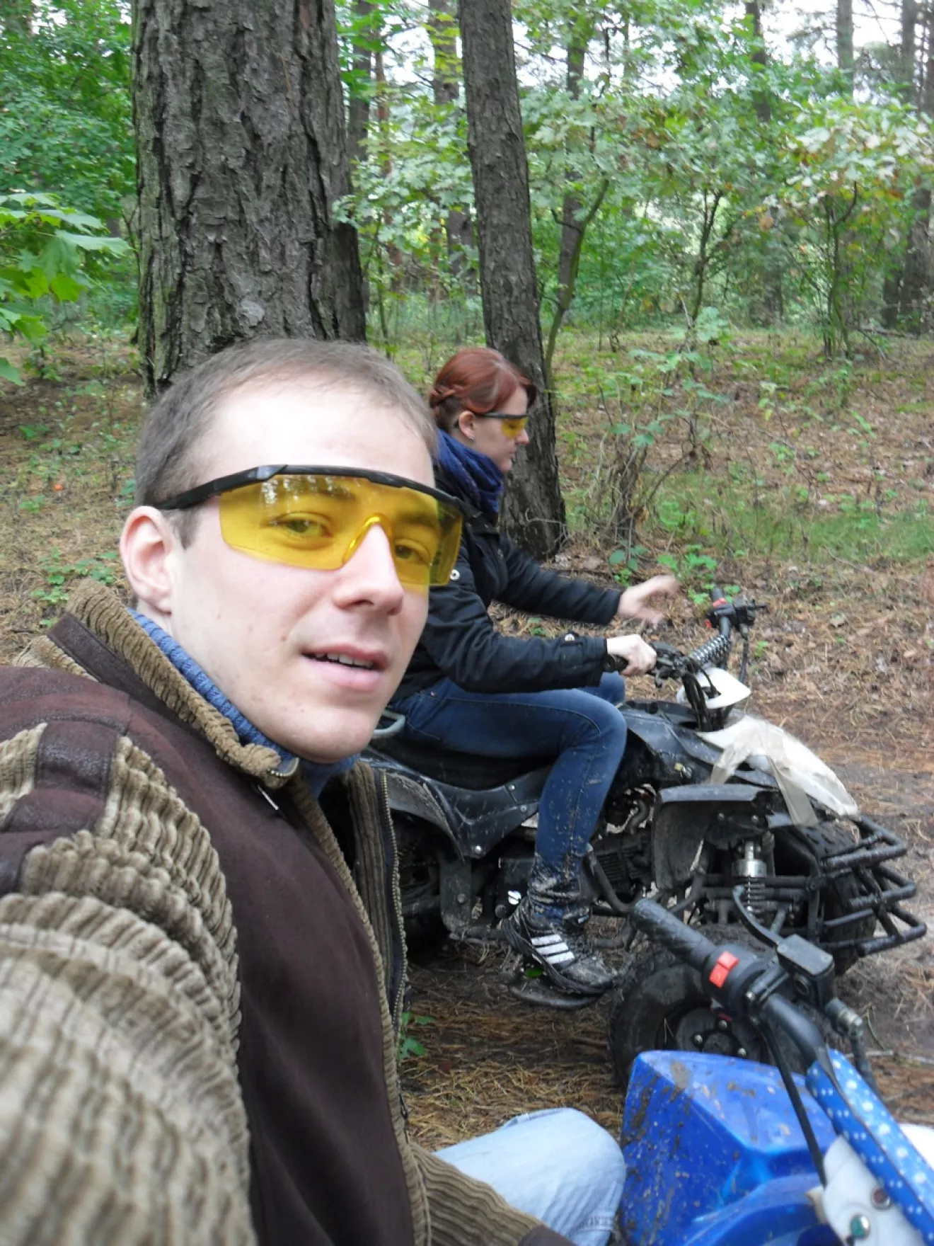 В итоге практически за 500 м до базы у ведущего снова глохнет движок и мы уже сами добираемся на место, откуда начали наш марафон. Сделали по лесу немалый крюк. Катались чуть более часа, но эмоций было море. Признаюсь чесно, девушка у меня лучше водит квадрик, чем я. Не моё это наверное. Хоть и четыре колеса, но не то. А она умница. Быстро освоила и покорила его. Несмотря на несколько неудач в начале мероприятия, очень хорошо проехала всю трассу до самого её конца. На финише были грязные штаны, носки и конечно обувь :) Но это ведь ерунда. Главное, какие эмоции были получены.