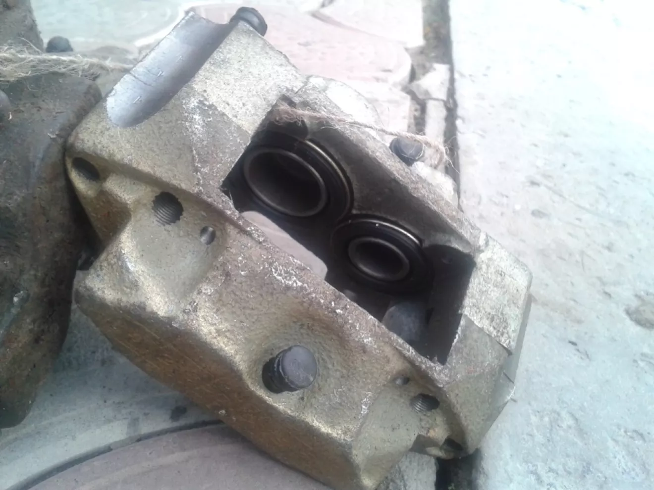 В тот день, когда настраивал карбюратор познакомился с одним мужиком. Он приехал на черной Волге так же с проблемным карбом и как то удалось нам разговориться о запчастях и прочим мелочам. Оказалось у него когда то был Москвич. Состояние отменное, куча запчастей. Отдал он его, значит, сыну в подарок. Пусть, мол, катается. А тот покатался с пол годика. Надоело с машинкой возиться и он его смело отправил на металобазу. Порезали на кусочки. В гараже осталось куча запчастей, которые он после этого стал распродавать понемногу. Узнав об этом приехал к нему домой на следующий день. В гараже конечно хлама куча. И волговского и еще какого то. Нашли вот такие замечательные супорта. Новые, не обкатанные. Я не удержался и купил за 200 грн. Не переплатил?