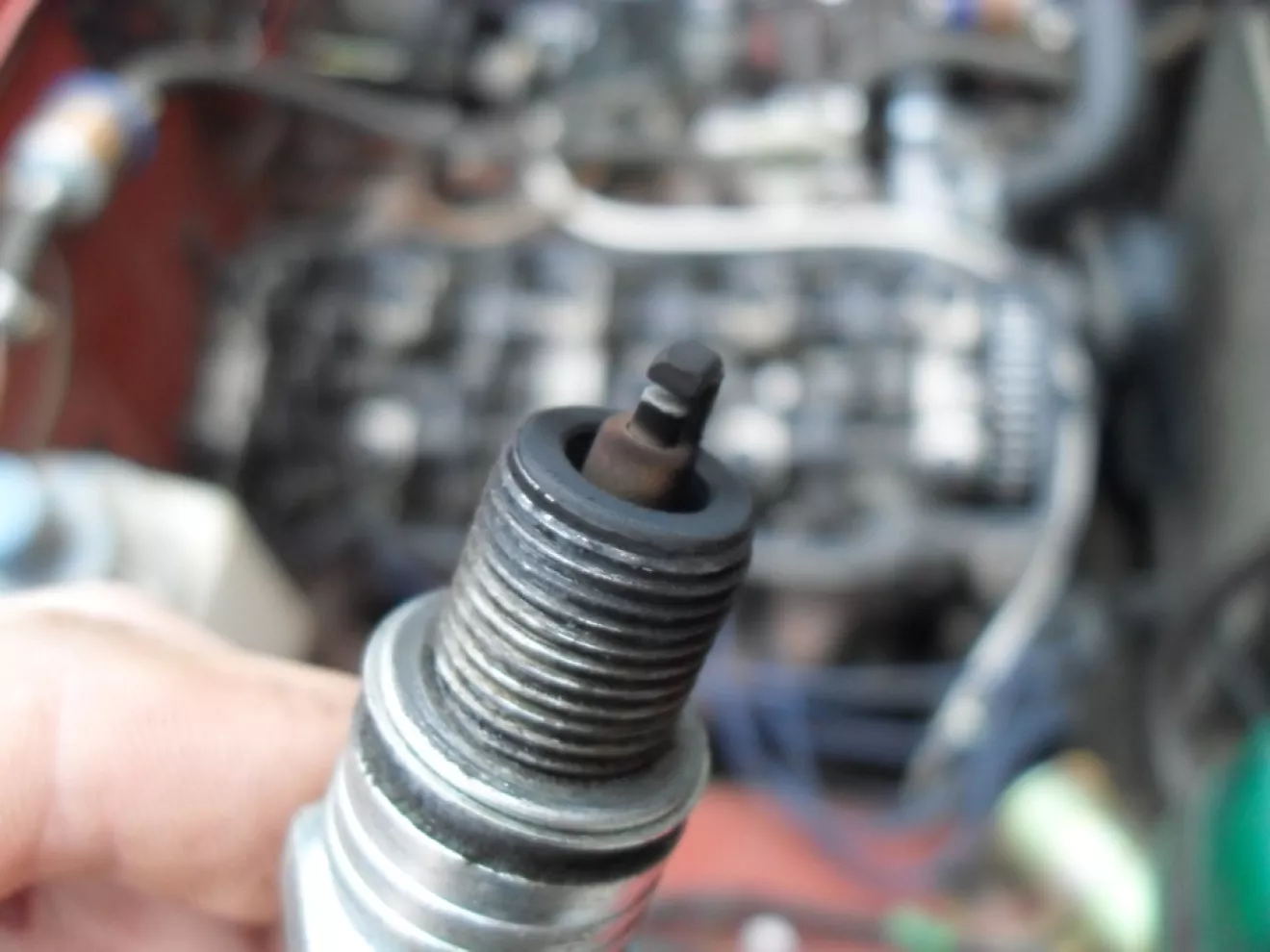 Так как веду постоянный контроль за растратами на бензин и записываю все поездки и километражи, то к осени уже установилось довольно неприятное на мой взгляд число. Речь о расходе топлива. Езжу преимущественно по городу на короткие дистанции. Машину грею не полностью. Завел на подсосе, утопил его немного до оптимальных минимальных оборотов. Затем подождал минутки 3 и медленно на второй передачи еду по дворам, чтобы разогреться немного. На главную выезжаю уже за 40 град. До работы не оч далеко, но прогреться до 80-ти успеваю. Ну и так же обратно цикл. Бывает конечно и куда еще поеду.дача там… или просто покататься за городом. И вот после сезонного наблюдения у меня выплыла цифра расхода — 13,5 литров. Ахтунг! Я в недоумении. Я конечно понимаю, что городской цикл и прочее, но тапку я в пол не давлю и стараюсь трогаться аккуратно и разгоняться медленно. Неоднократно выкручивая свечи, я наблюдал вот такую картинку… см. фото ниже.