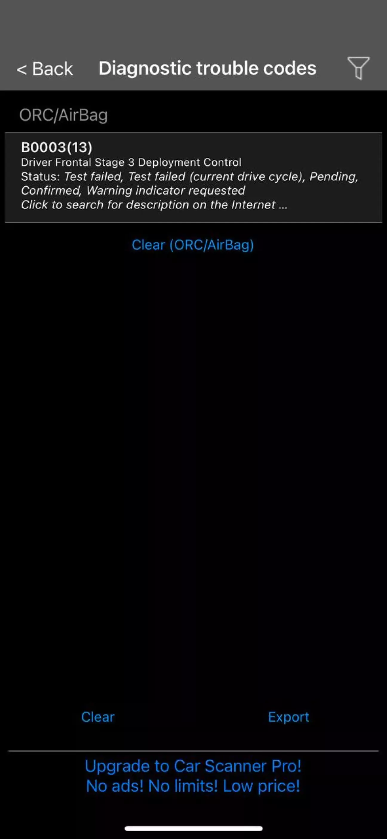 Знайшов на форумі таку ж проблему: як виявилося, помилки B0001 , B0002 , B0003 відповідають за три фішки на подушці безпеки водія. Як підказали колеги у групі по Чиркам, проблема може бути в фішках проводці, подушці або шлейфі під кермом.