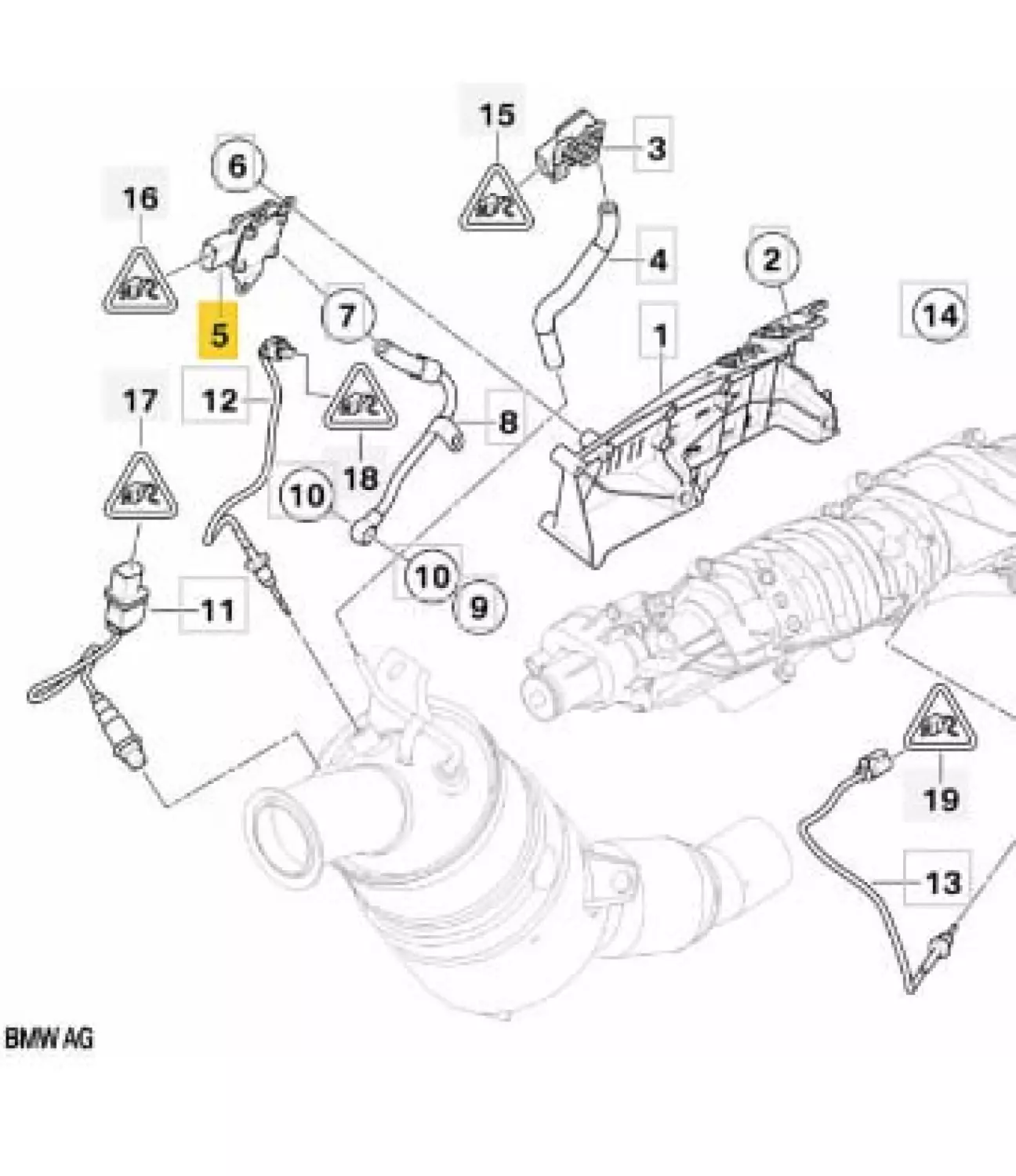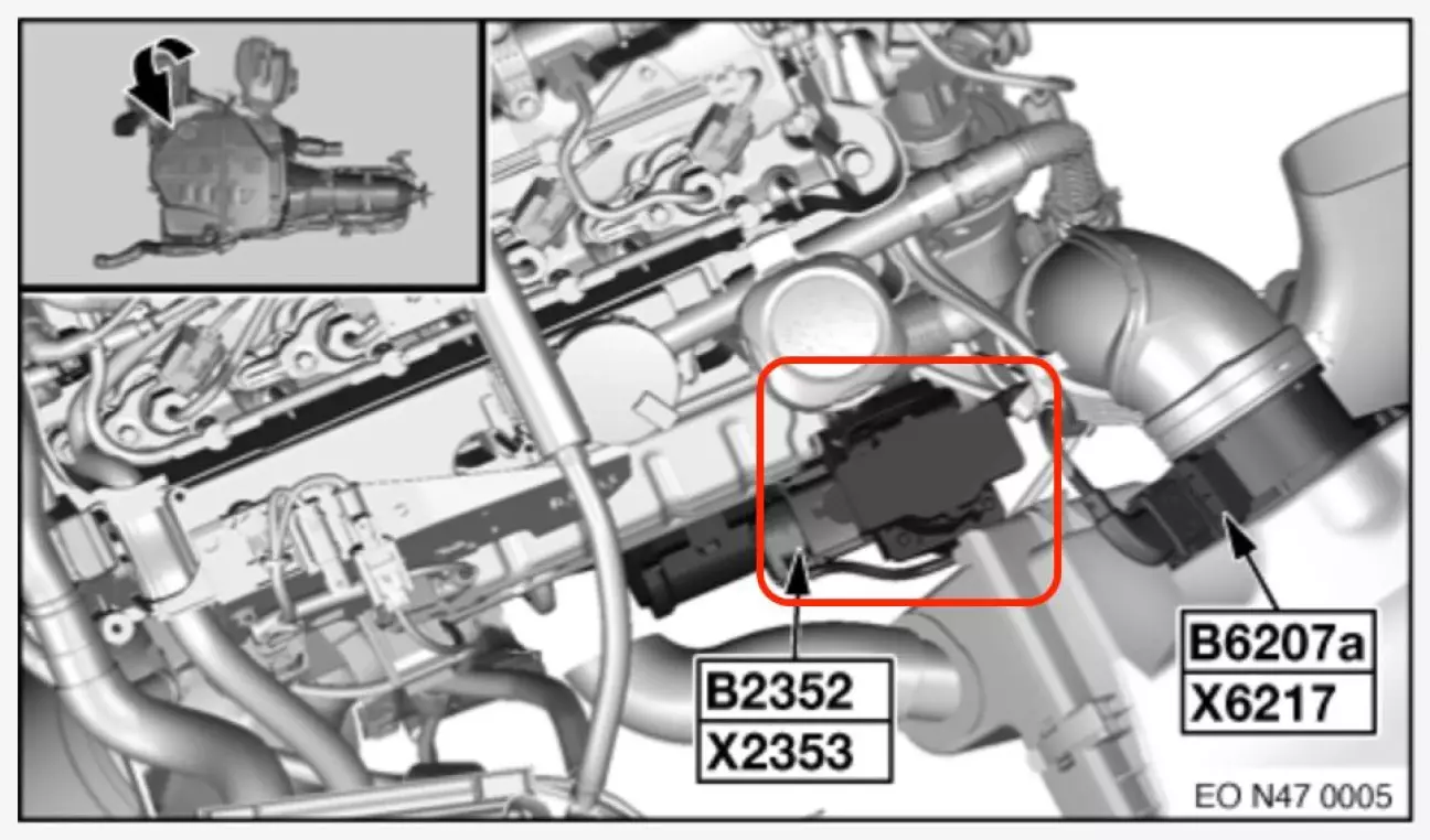 Почав розпитувати чат-жпт що ж то за помилка. Він мене спочатку скерував до датчика противотиску перед ДПФ(#3 на зображені), потім до іншого датчику тиску (#5 на зображені), але всі вони були справні і їх відключення викликало ряд інших помилок.