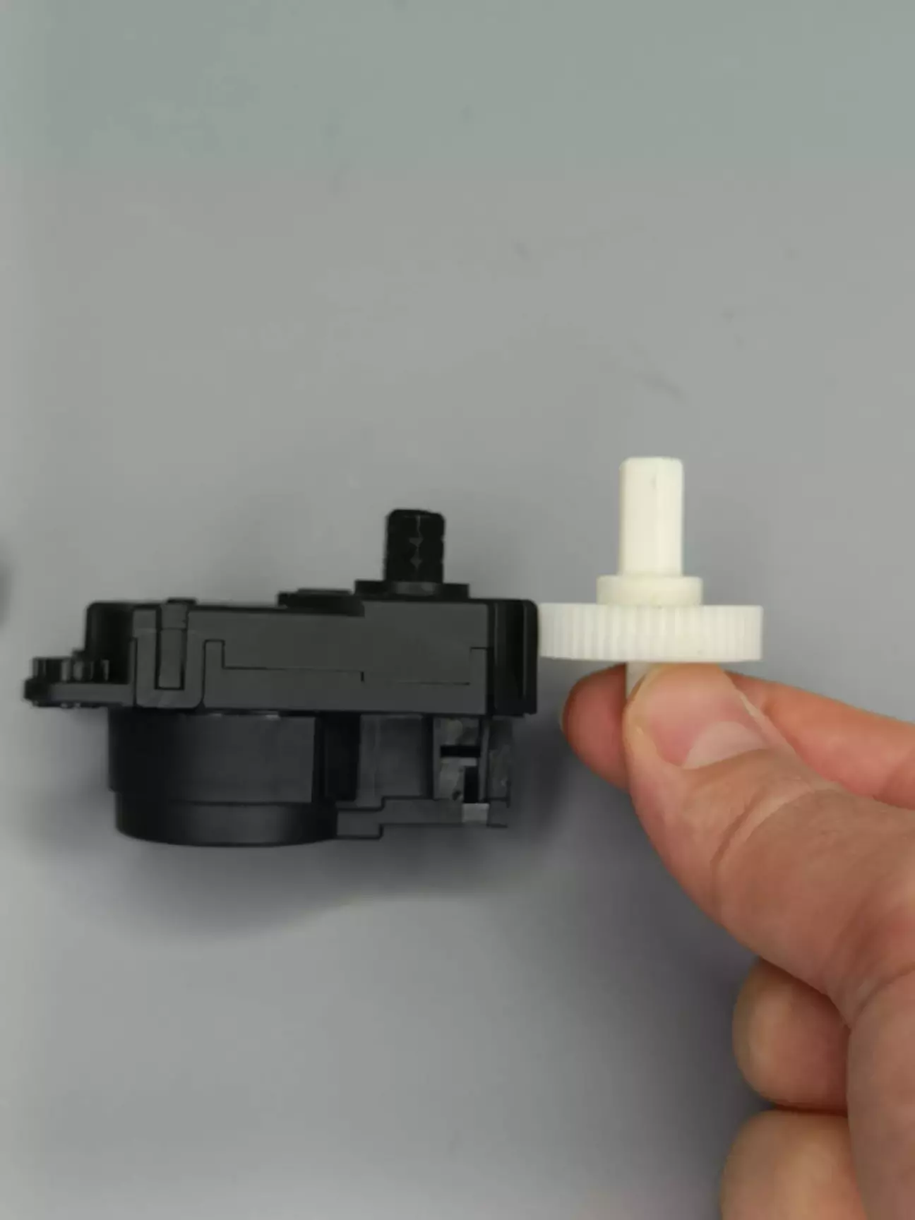 Розборка салона доволі проста описувати думаю немає сенсу усе мяке та знімається дуже легко. Знімаємо бокову накладку водійської сторони де запобіжники, потім відкручуємо ручку капота, тягнемо на себе панель з кнопками, потім відстібаємопанель біля педалі газа, і відкручуємо патрубок. Знімаємо мотор актуатора (два болтика) Перед цім встановлюємо положення клімату холодне 18 C та вимикаємо запалення. Під час встановлення головне щоб мотор був в крайньому положенні. Розбираємо актуатор міняємо шестерню та встановлюємо.