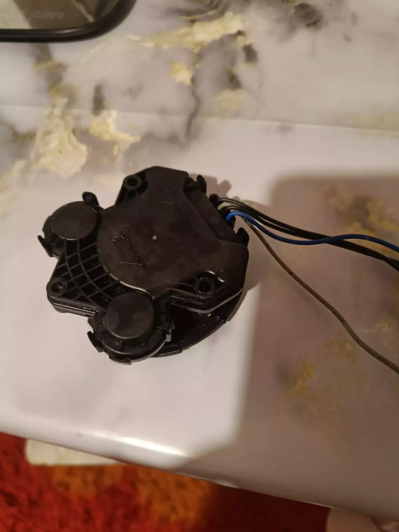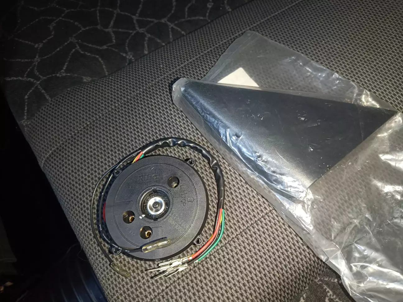 Комплект для встановлення нарешті зібрався, а саме: вживаний електро двигун дзеркала і джойстик управління з розбірки, новий оригінальний декоративний куток заглушка.