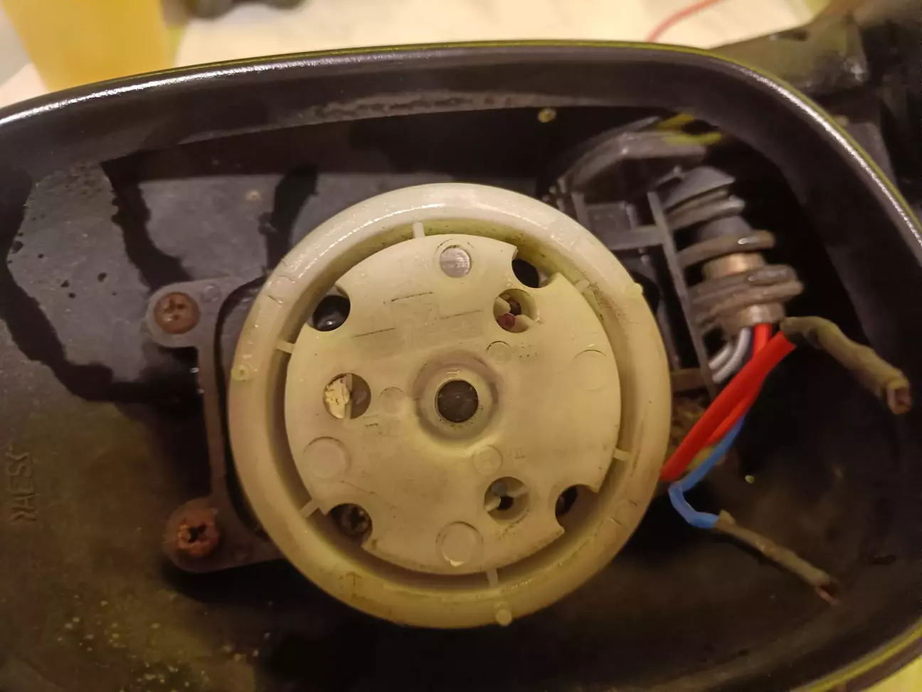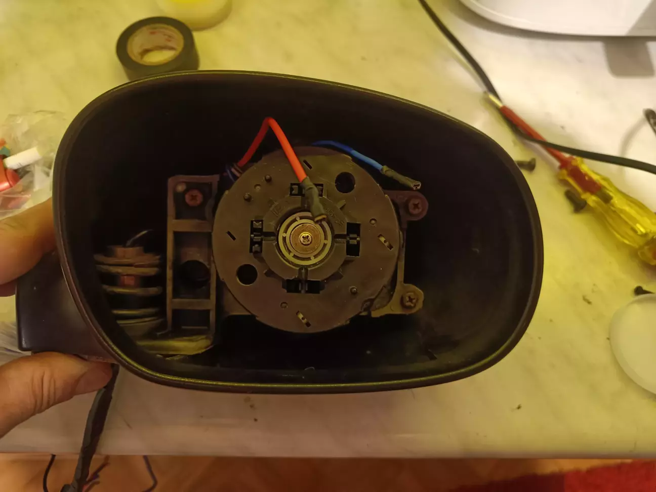 Розбираємо штатне дзеркало і знімаємо механізм керування: