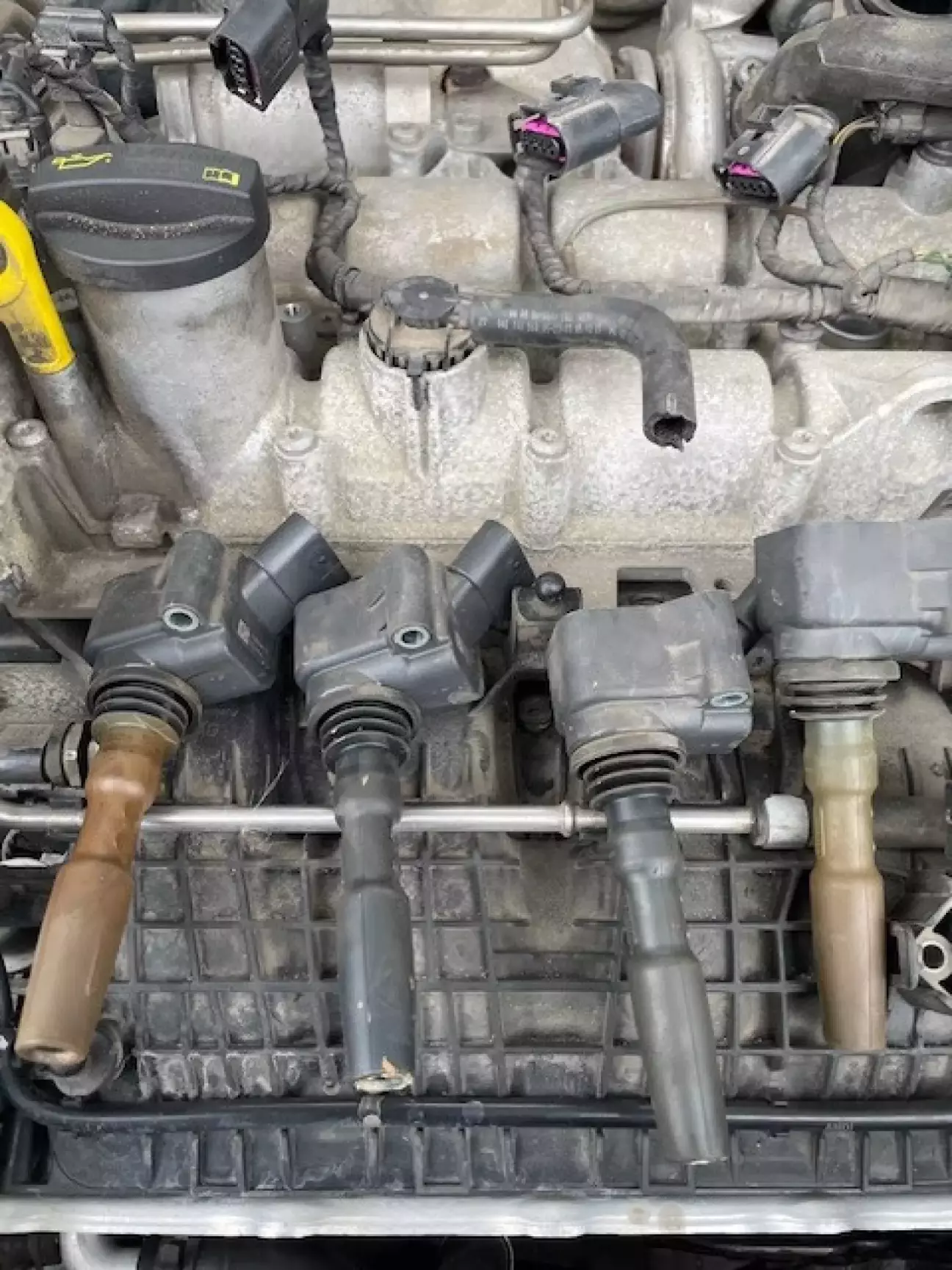 Розібрав, наконечки 1-го та 4-го циліндрів, чомусь відрізняються по кольору від інших, чому так, мені не зрозуміло.