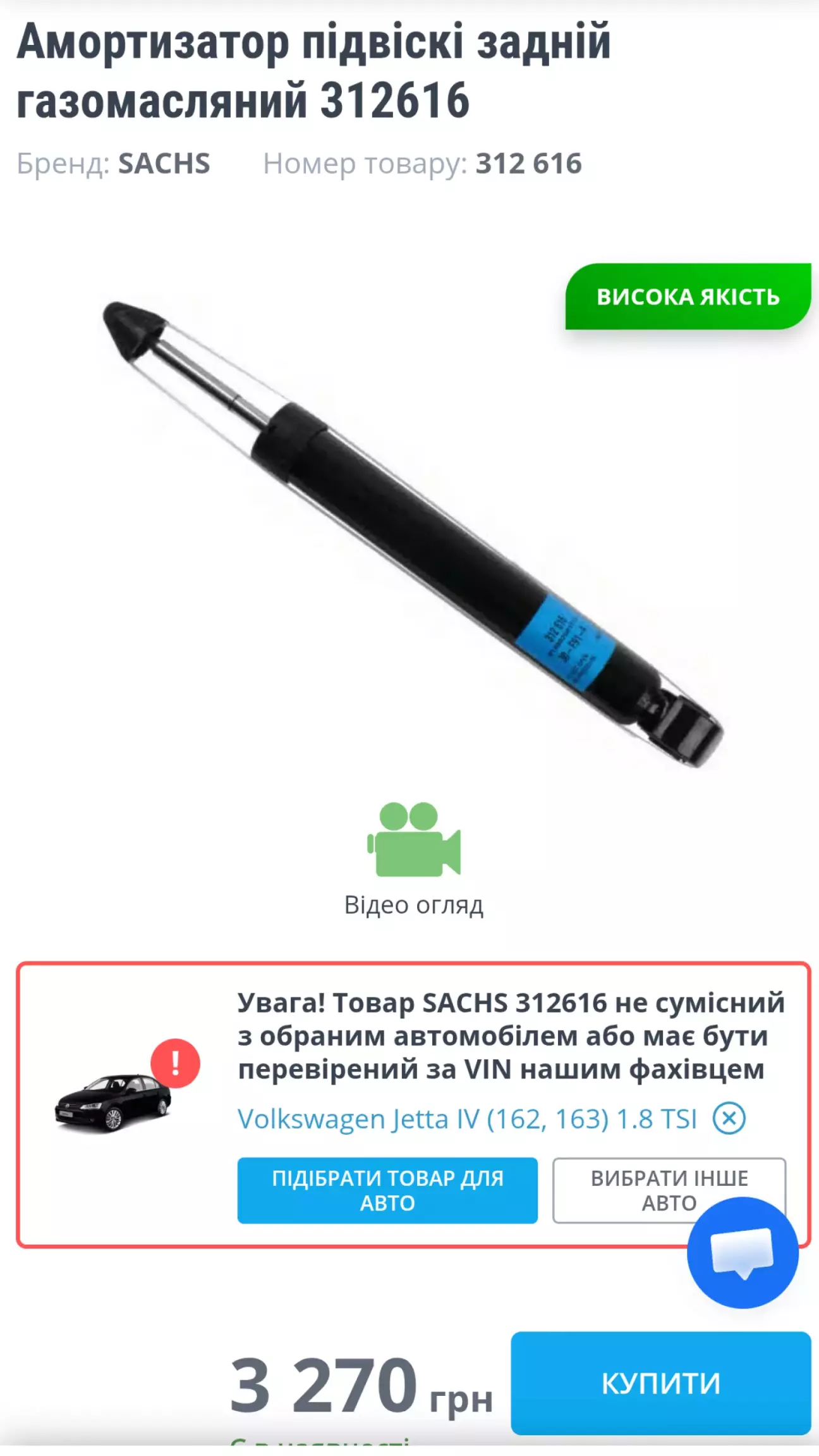 Амортизатор підвіскі задній газомасляний 312616   2шт = 6540грн