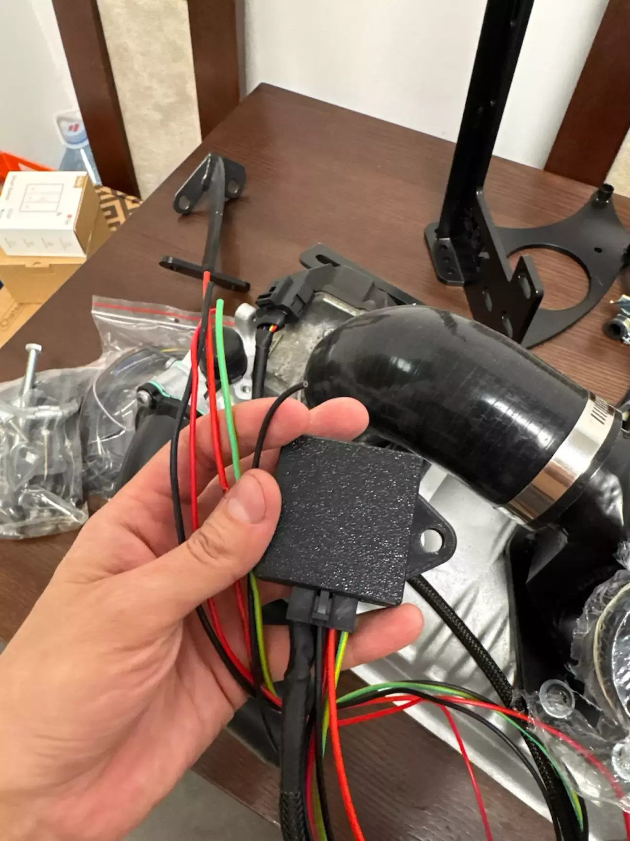 Його потрібно встановити в відсік з ECU, і прокинути для нього живлення, масу і сигнал педалі акселератора. Все взяв прямо там, в відсіку ECU, заодно прокинув в салон проводку на широкополосну лямбду і вивів провода на MAP сенсор.