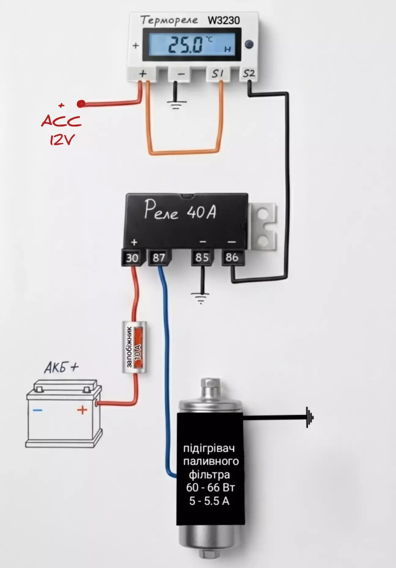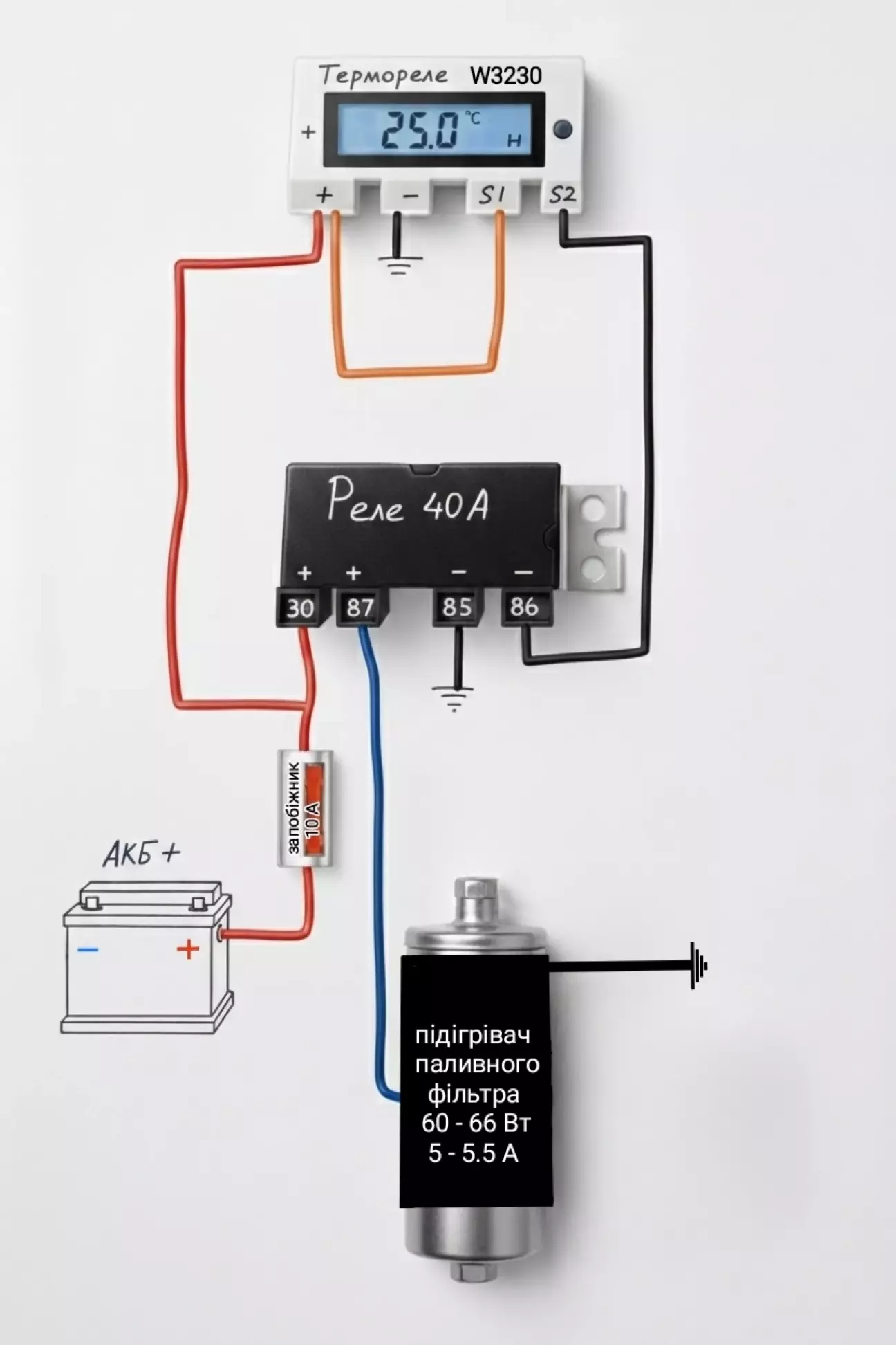 Після встановлення підігрівача на паливний фільтр з кнопки тут , відразу захотів замість неї встановити терморегулятор.