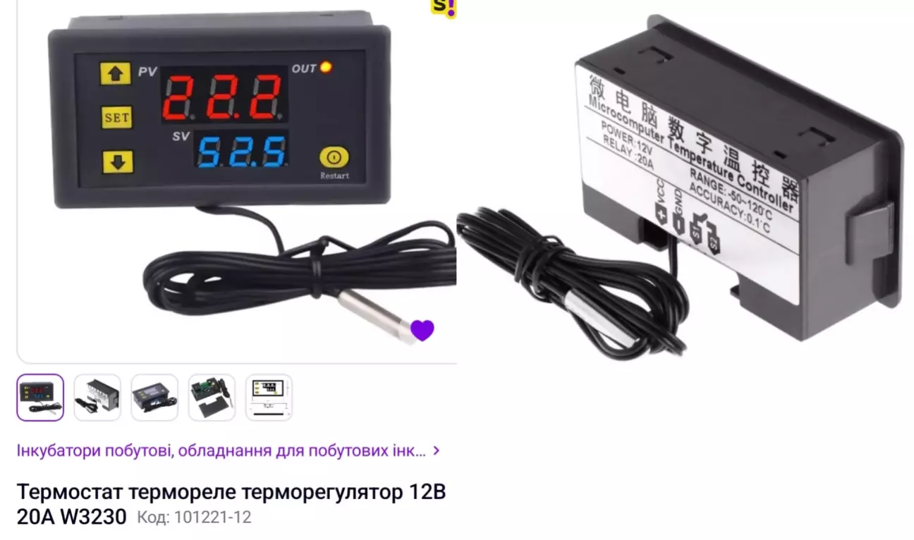 Терморегулятора маленького не знайшов на 12v, лише звичайний W3230 12v.