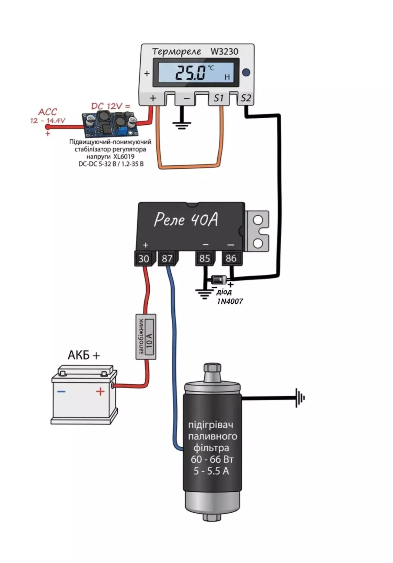 Після встановлення підігрівача на паливний фільтр з кнопки тут , відразу захотів замість неї встановити терморегулятор.