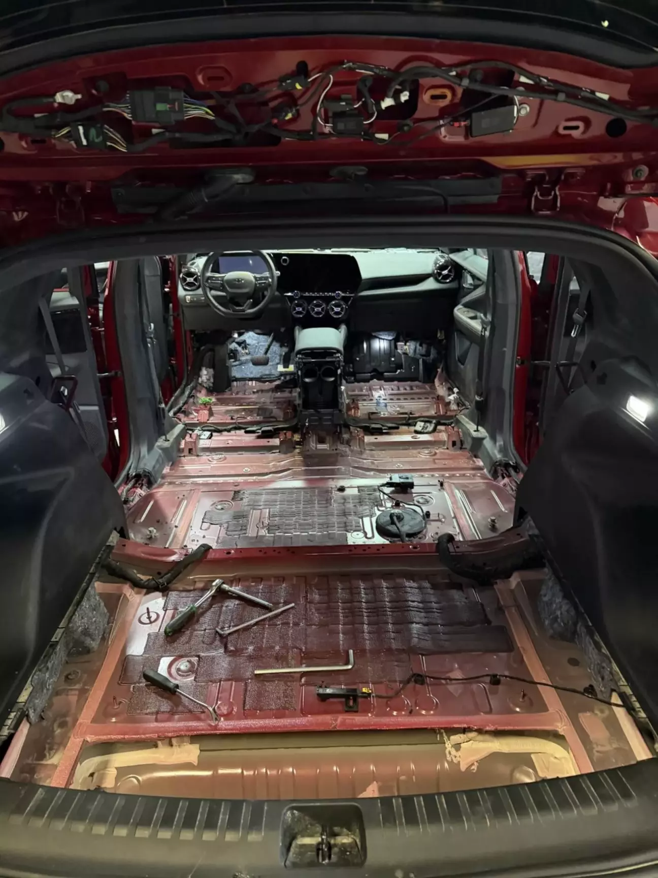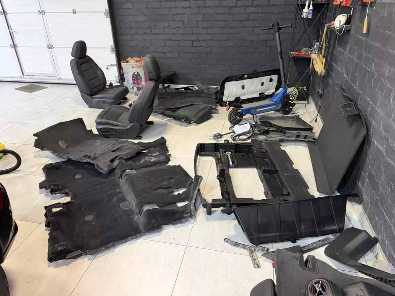 Далі повністю розібрали салон, бо через розбиті вікна підлога промокла наскрізь і приступили до хімчистки та сушки