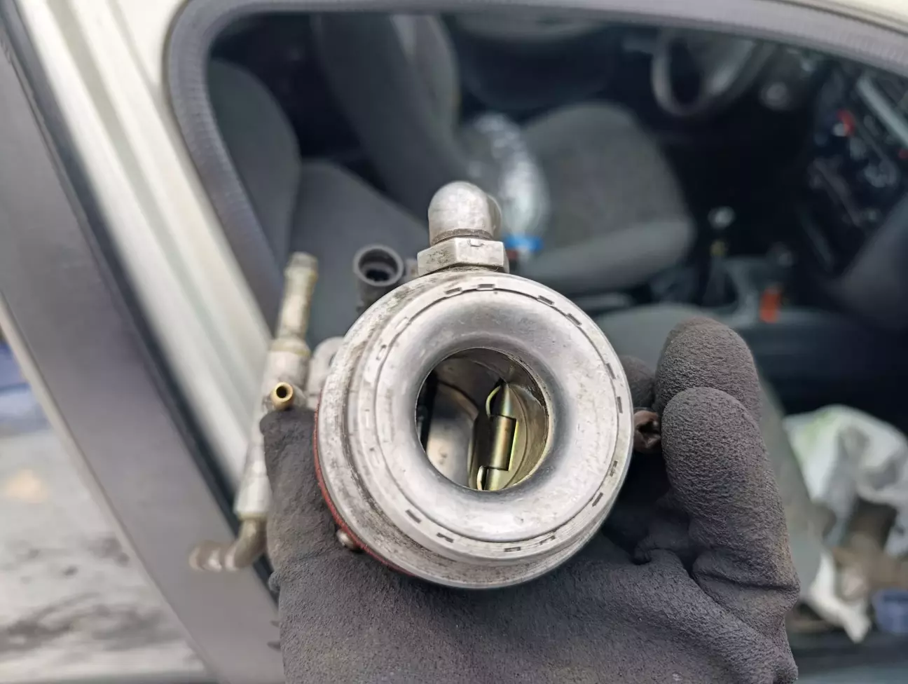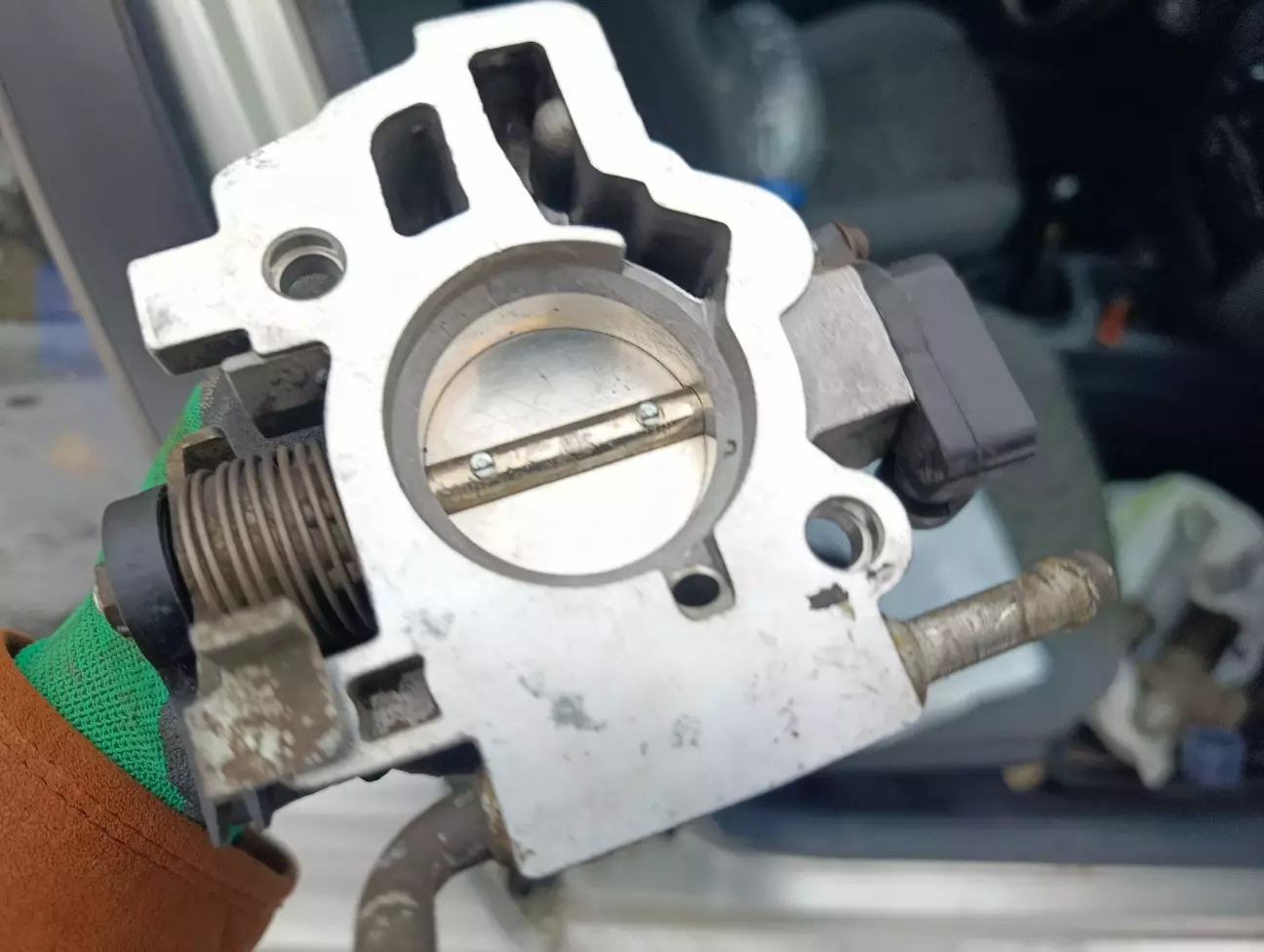 Все гарно вимив і вичистив. Регулятор планував розбирати але передумав. Лише помив. З заслінкою виявилися проблеми. Залипання заслінки виявилося не залипанням. Болт в який впирається заслінка виявився закрученим через що заслінка не мала упору.