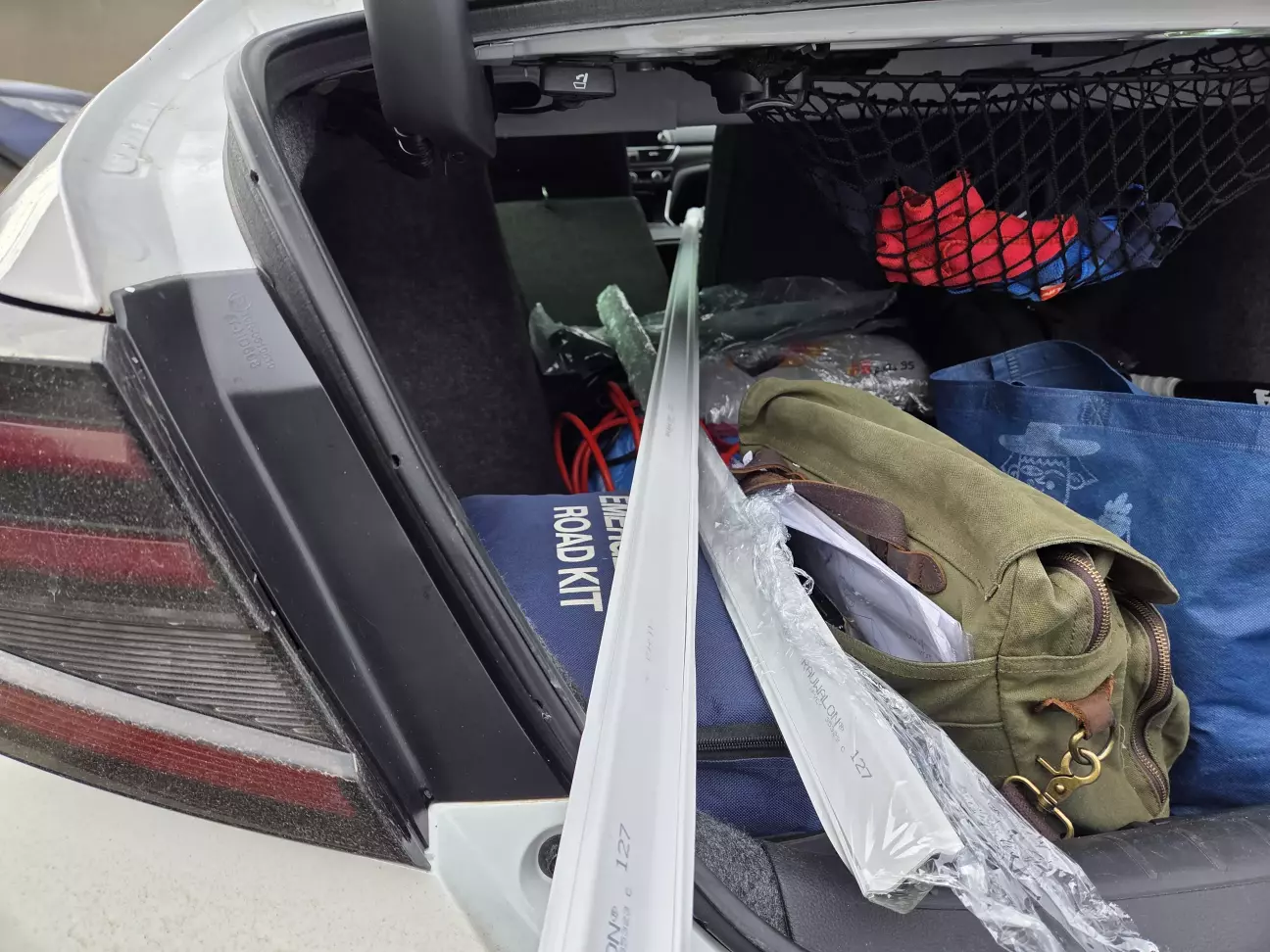 Доброго дня .Один з факторів вибору 10 Аккорду був великий салон та багажник.Звісно не для вантажоперевезень купував але іноді щось по моїй праці довге треба перевезти.Хонда справляеться добре.Плінтус кухоний 3700 мм зайшов легко .На фото видно ,трохи зігнув та зайшло.Придумаю що ще загрузити велике в неї:)))Гарного дня.
