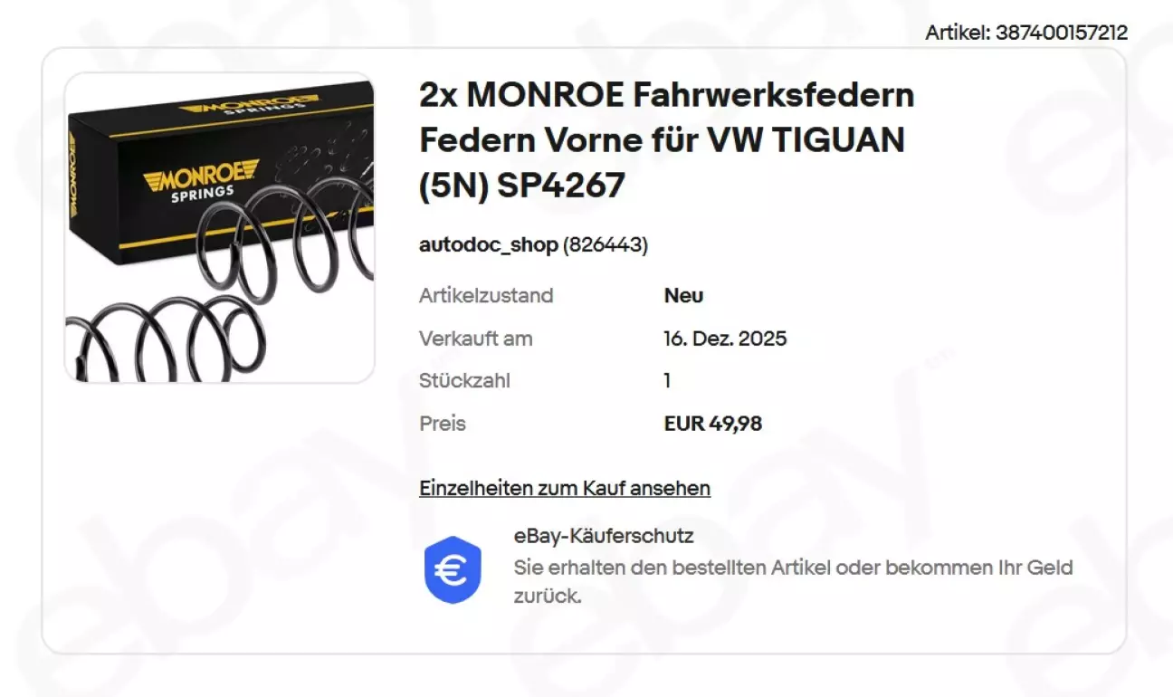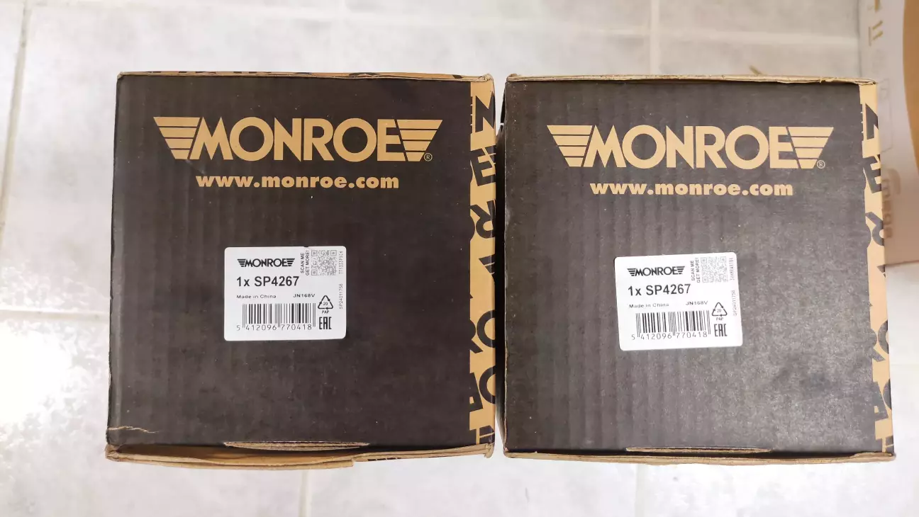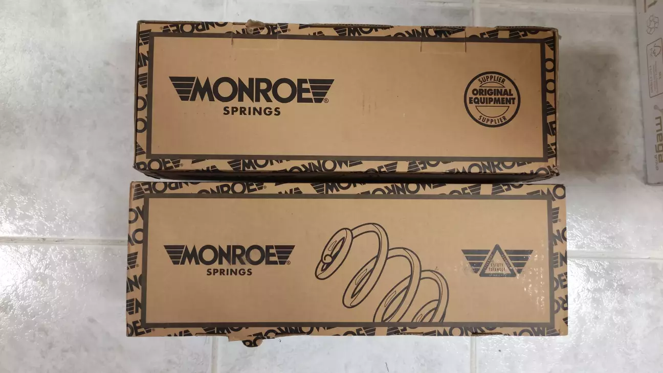 Чому саме вони? Бо в батька скалося гарне враження про їхню продукцію ще на Г2, де вона гарно трималася роками на "чудових" українських дорогах. Досвіду заміни пружин власноруч в мене немає, як і потрібного інструменту, тому батько звернувся до знайомого українця на СТО. В домовлений час він приїхав туди, щоб поміняти пружини, а піднявши авто виявилося, що й ЗЛ відломилася також. Ну що ж, задні пружини вже довелося замовляти через СТО, тому ціна відповідна... Хоча й дійсно задні пружини чомусь дорожчі за передні... На зад теж поставили Monroe, хіба що з номером SE3680. Майстер оглянув підвіску і звинуватив дубові амортизатори в смерті пружин. Порекомендував затаритися новими стійками в коло, задніми сайлентблоками передньої осі (каже Meyle HD тут топчик) та оту стійку стабілізатора, в яку впиралася зламана пружина та приїхати до нього знову. Батько взяв листочок з назвою деталей німецькою та скинув мені. Буду знову таритися)))