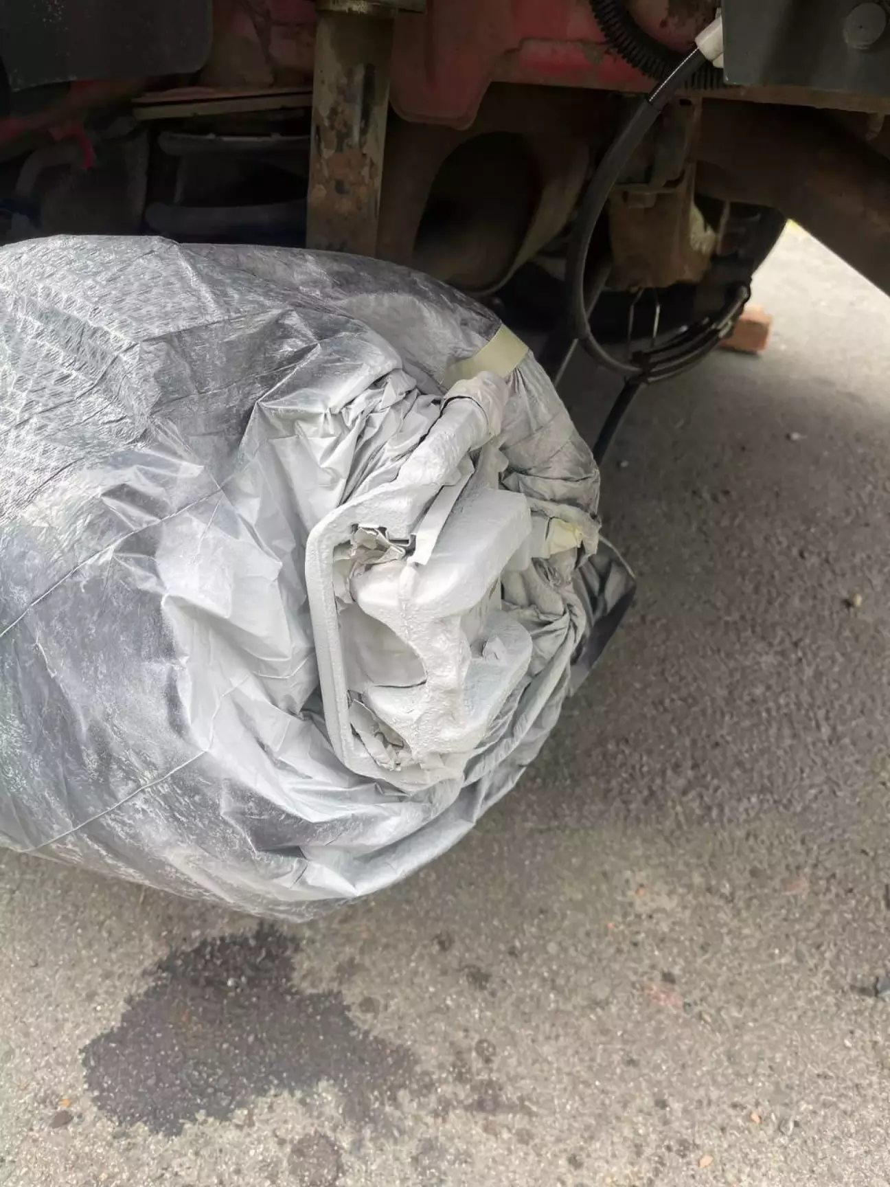 Зняв колеса, зачистив все що потрібно було механічно від іржі, тоді наніс перетворювач іржі. Зачекав 20 хвилин, все висохло, обезжирив розчинником. Взяв пакети і паперовий скотч і взявся все обклеювати. Робота така трішки муторна і потребує уважності. Важливо об клеїти всі резинки, патрубки і деталі які непотрібно малювати, інакше потім буде важко змити фарбу. Купив банку грунту звичайного, лаку, та банку червоної фарби. Але температуротривкої (800*С). Бо гальма нагріваються дуже, тому краще не економити на такому. Тоді було загрунтовано, пофарбовано і по лаковано у 2 слої кожен процес (з витримкою в 20 хв між шарами та десь 30 хв між процесами) - температура на вулиці була 20*C тому фарба стигла скоро.