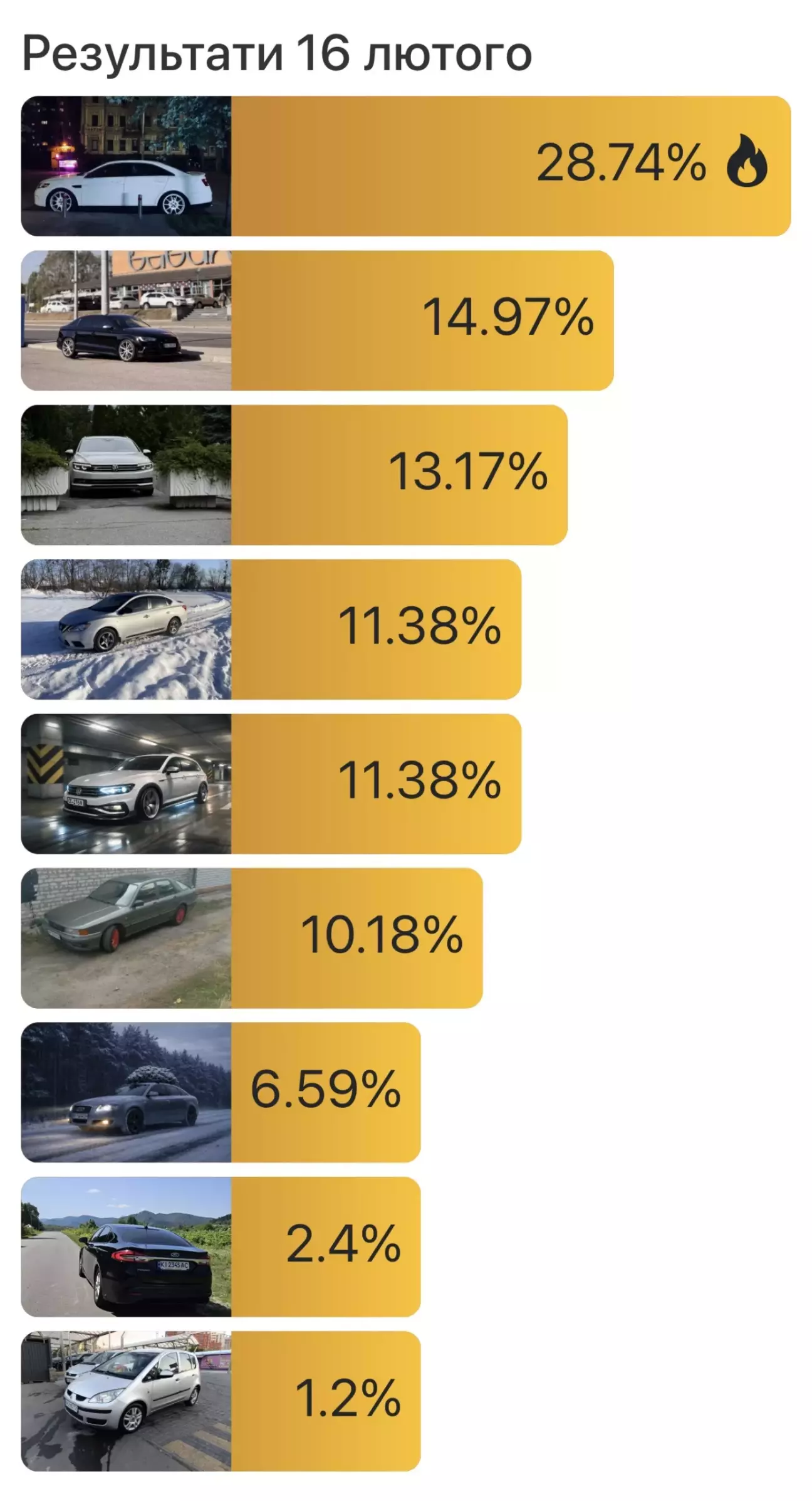 Лишу на згадку. Знову авто попало на вибори і знову 3 місце😁 стабільність. Дякую всім, хто підтримав моє авто! Цього разу кількість голосів була більшою за попередній, що не може не радувати!