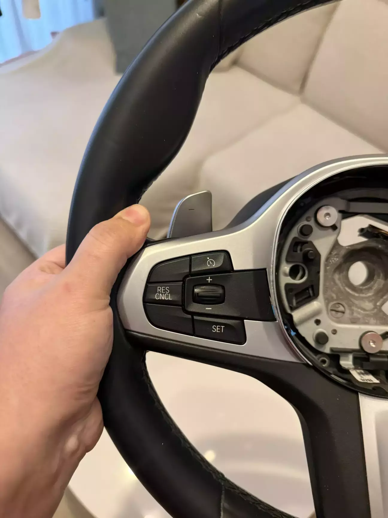 Нарешті знайшов по адекватній ціні кермо від м-пакету, в дуже гарному стані, та ще й по своїй комплектації, маю на увазі кнопочки на кермі.