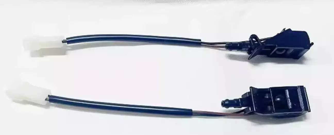 На самих форсунках омивача з підігрівом – відрізати штатні роз’єми (якщо немає до них зворотних роз’ємів типу «мама») і припаяти до кожної з них роз’єм типу «папа» з кабелем в гофрі довжиною по 50 см.